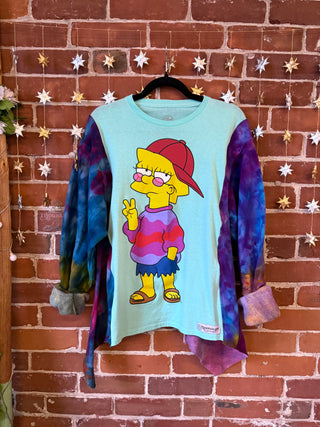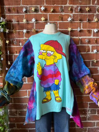 OOAK Autumn Collection- Size Medium Upcycled Tie Dye Lisa Simpson Hippie Trapeze Top