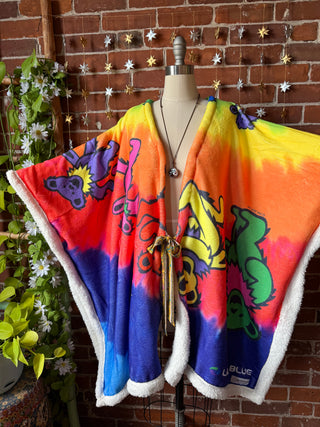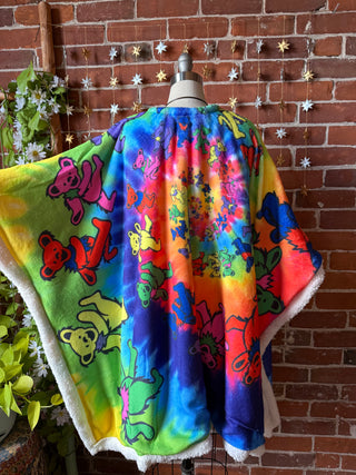 OOAK Autumn Collection - Upcycled Grateful Dead Dancing Bears Inspired Poncho Wearable Blanket