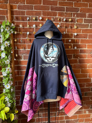 OOAK Autumn Collection- Birdsong Grateful Dead Inspired Wing Style Kantha Poncho Hoodie Jacket