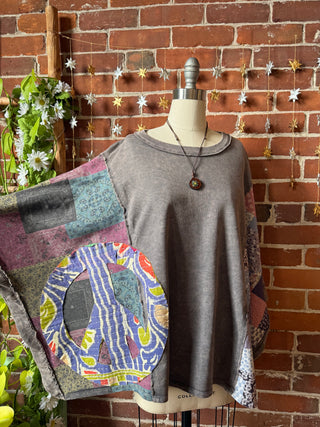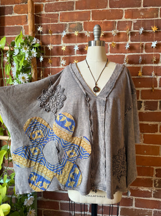 OOAK Winter Collection - Upcycled Kantha Peace Sign Patchwork Poncho Style Top 🌼
