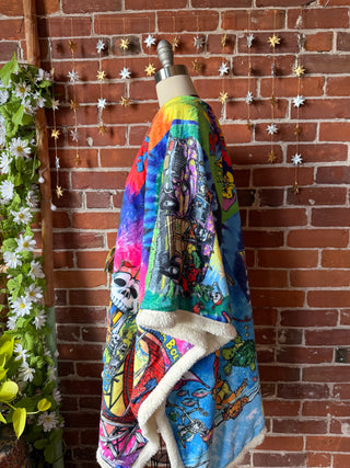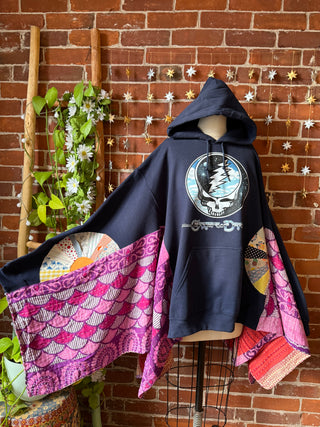 OOAK Autumn Collection - Upcycled Grateful Dead Inspired Poncho Wearable Blanket
