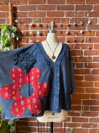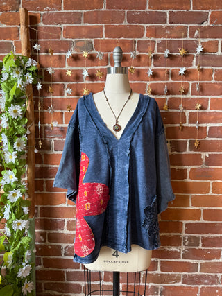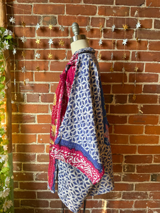 OOAK Winter Collection- Upcycled Big Time Rush Inspired Kantha Hi Lo Poncho Tee