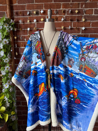 OOAK Autumn Collection - Upcycled Grateful Dead Inspired Ship of Fools Poncho Wearable Blanket