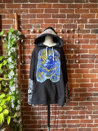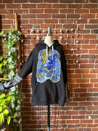 OOAK Autumn Collection- Upcycled Fender Guitar Lace Plaid Bell Sleeve Hybrid Top