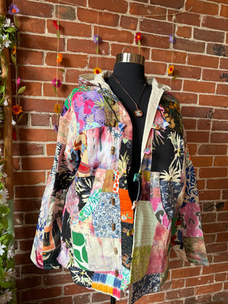 OOAK Autumn Collection - Upcycled Flower Patchwork Hi Lo Kantha Poncho Top 🌼