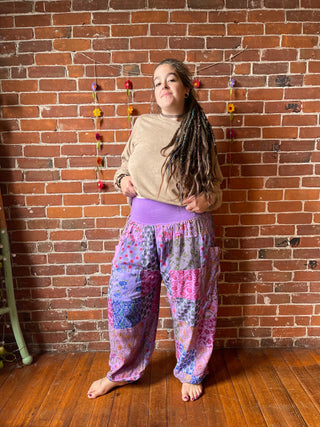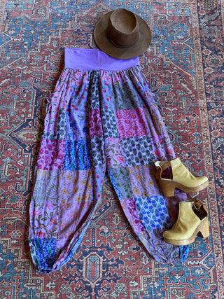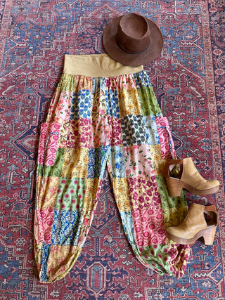 Bohemian Autumn Days Bandana Patchwork Print Lounge Pants - Vintage Sage