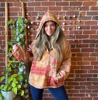 OOAK Autumn Collection - Upcycled Flower Patchwork Hi Lo Kantha Poncho Top 🌼
