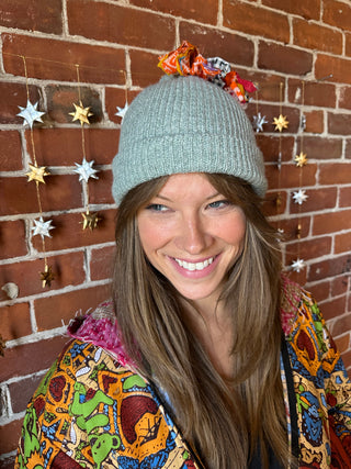 OOAK Autumn Collection - Kantha Tassel Pom Pom Beanies