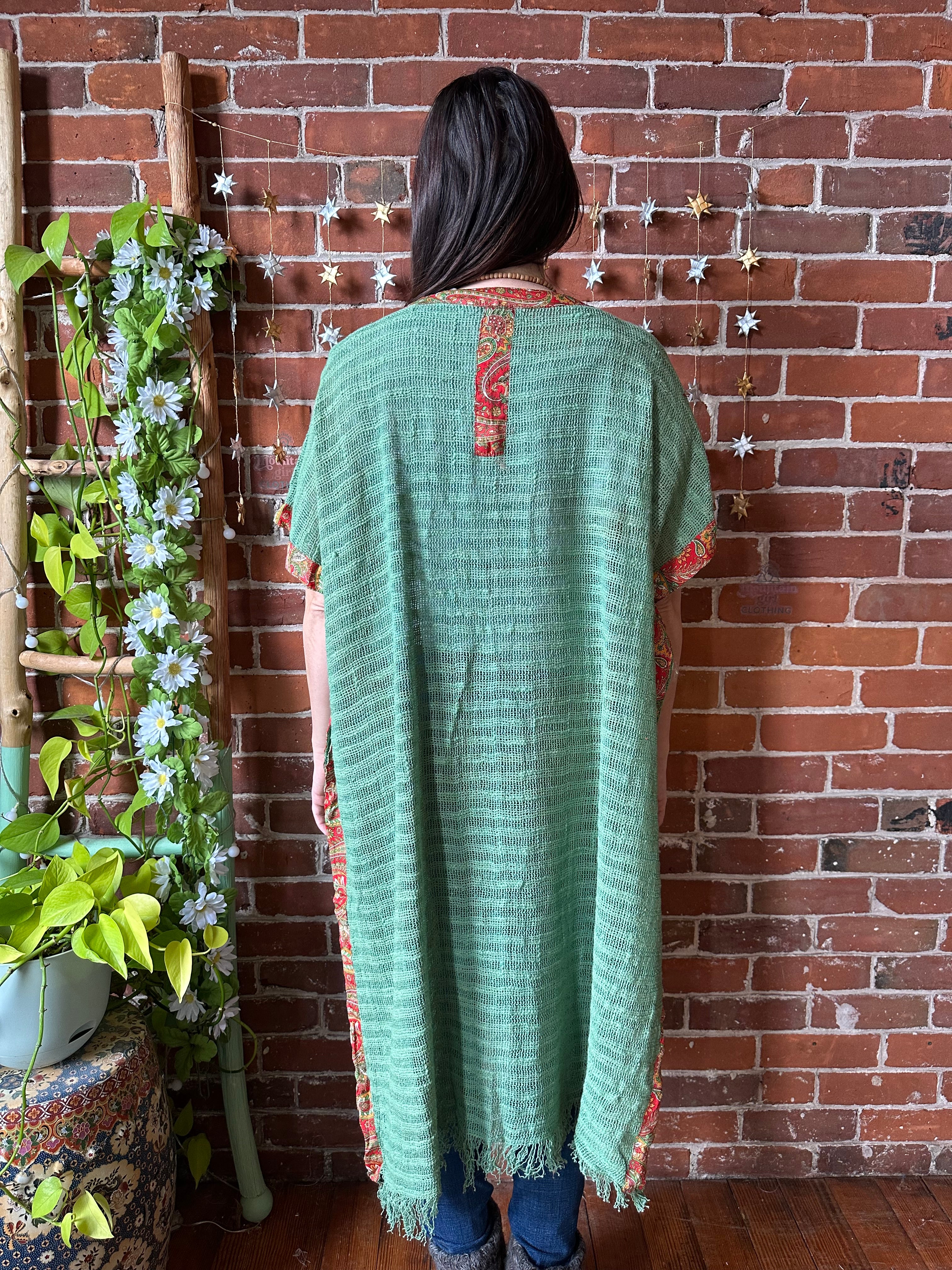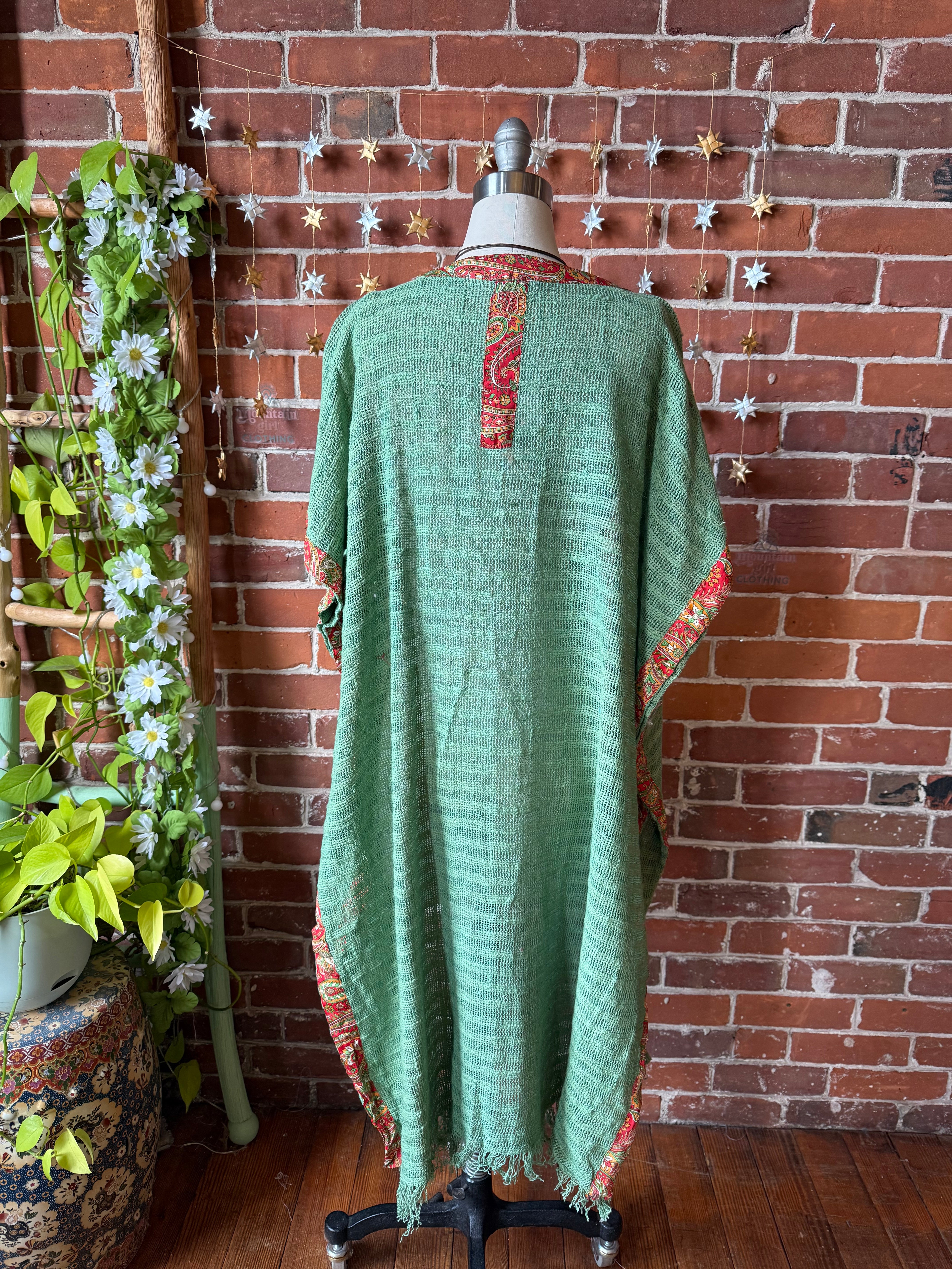 100% Cotton Aqua Green Woven Fringe Kimono Robe