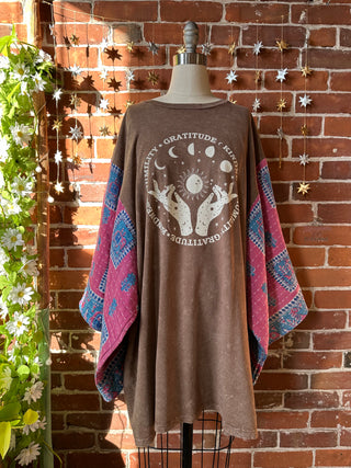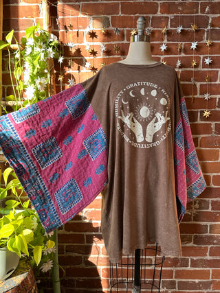 OOAK Winter Collection - Size 3XL Upcycled Gratitude Kantha Bell Sleeve T-shirt