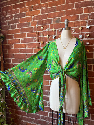 Organic Cotton Earth Print Patchwork Cropped Bell Sleeve Wrap Top