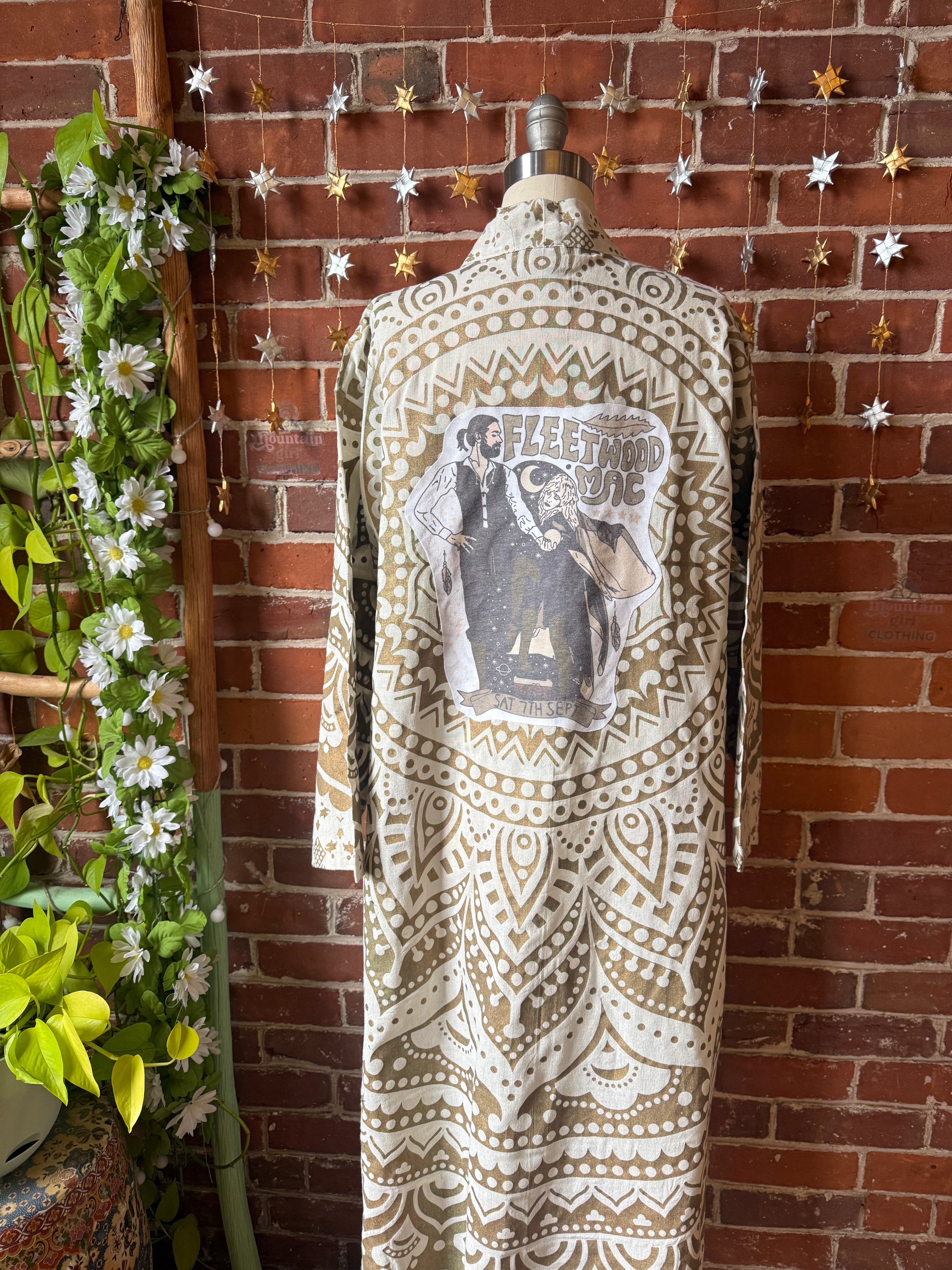 tapestry cotton kimono robe with pockets and sleeves, pockets in the front, belt loops with a belt included