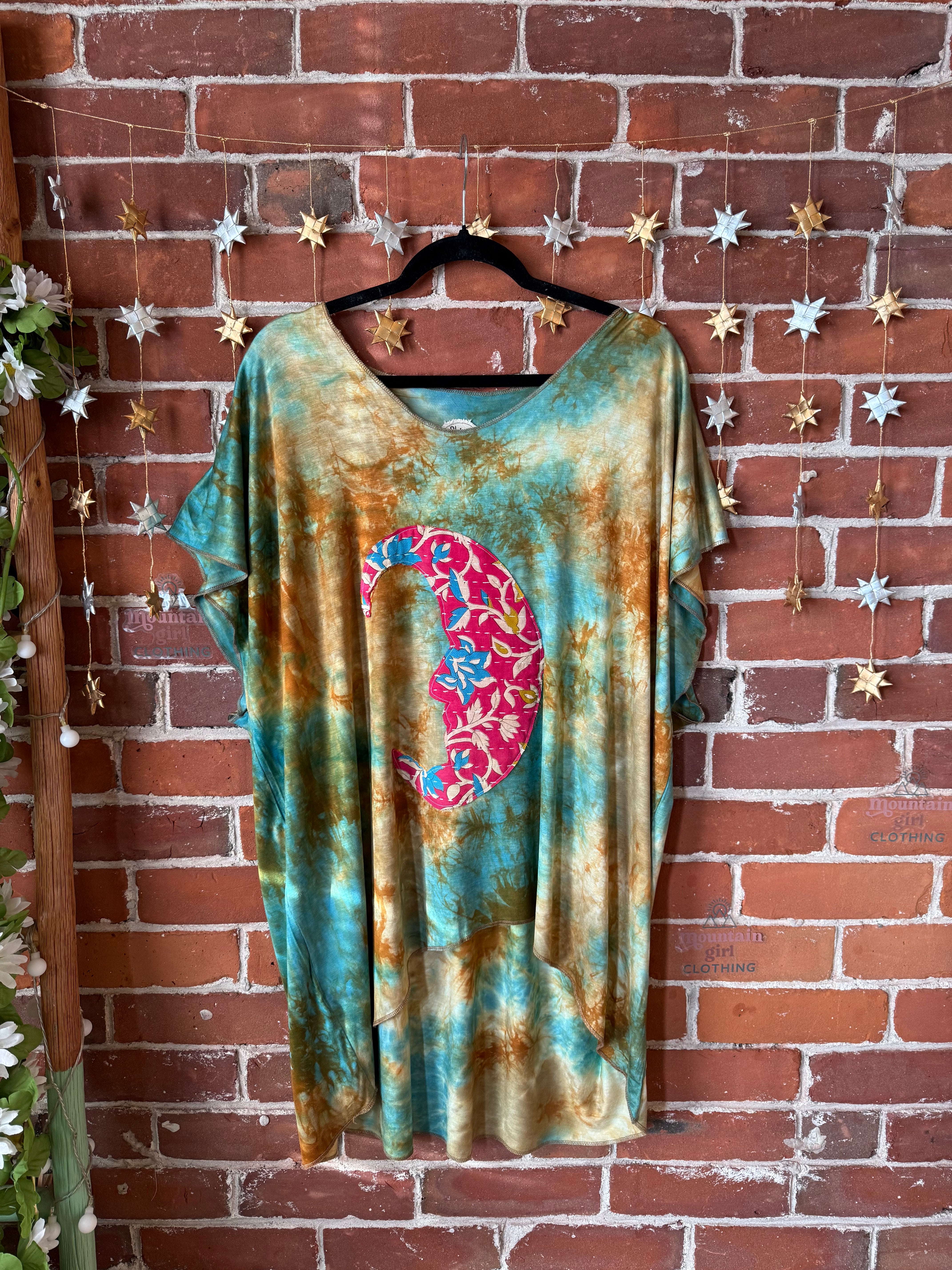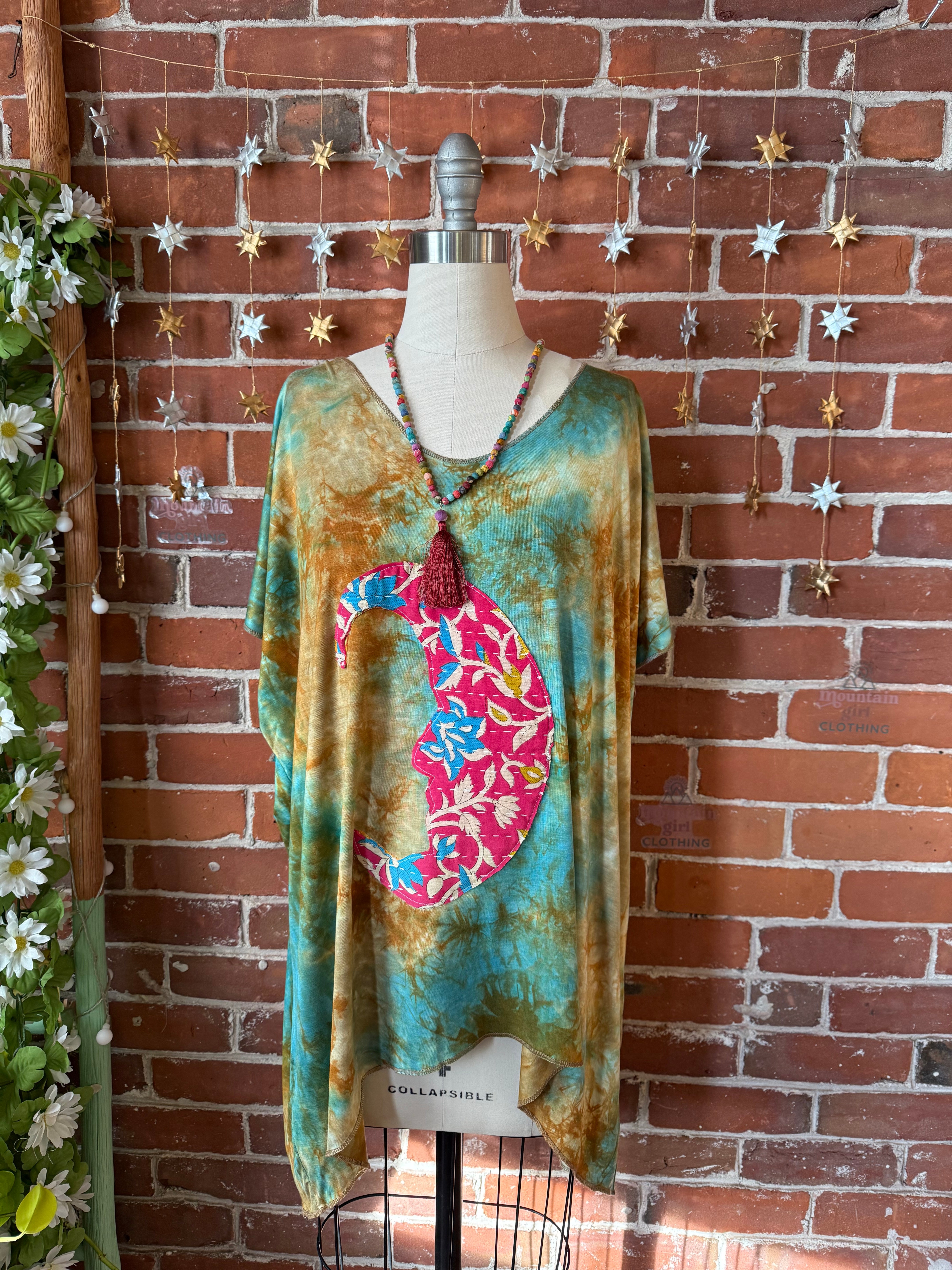 OOAK Winter Collection- Crescent Kantha Moon Tie Dye Free Flowing Tunic / Top