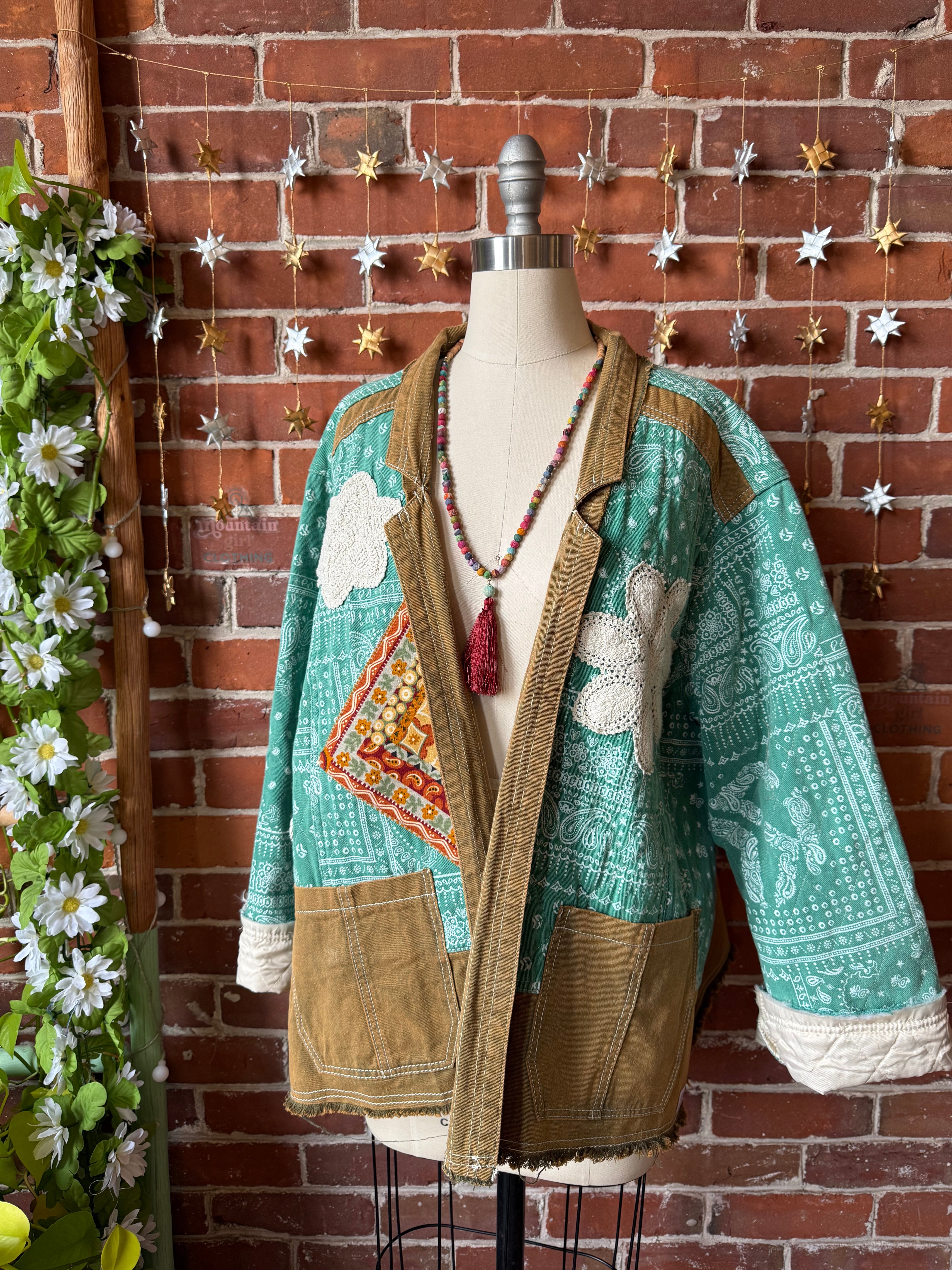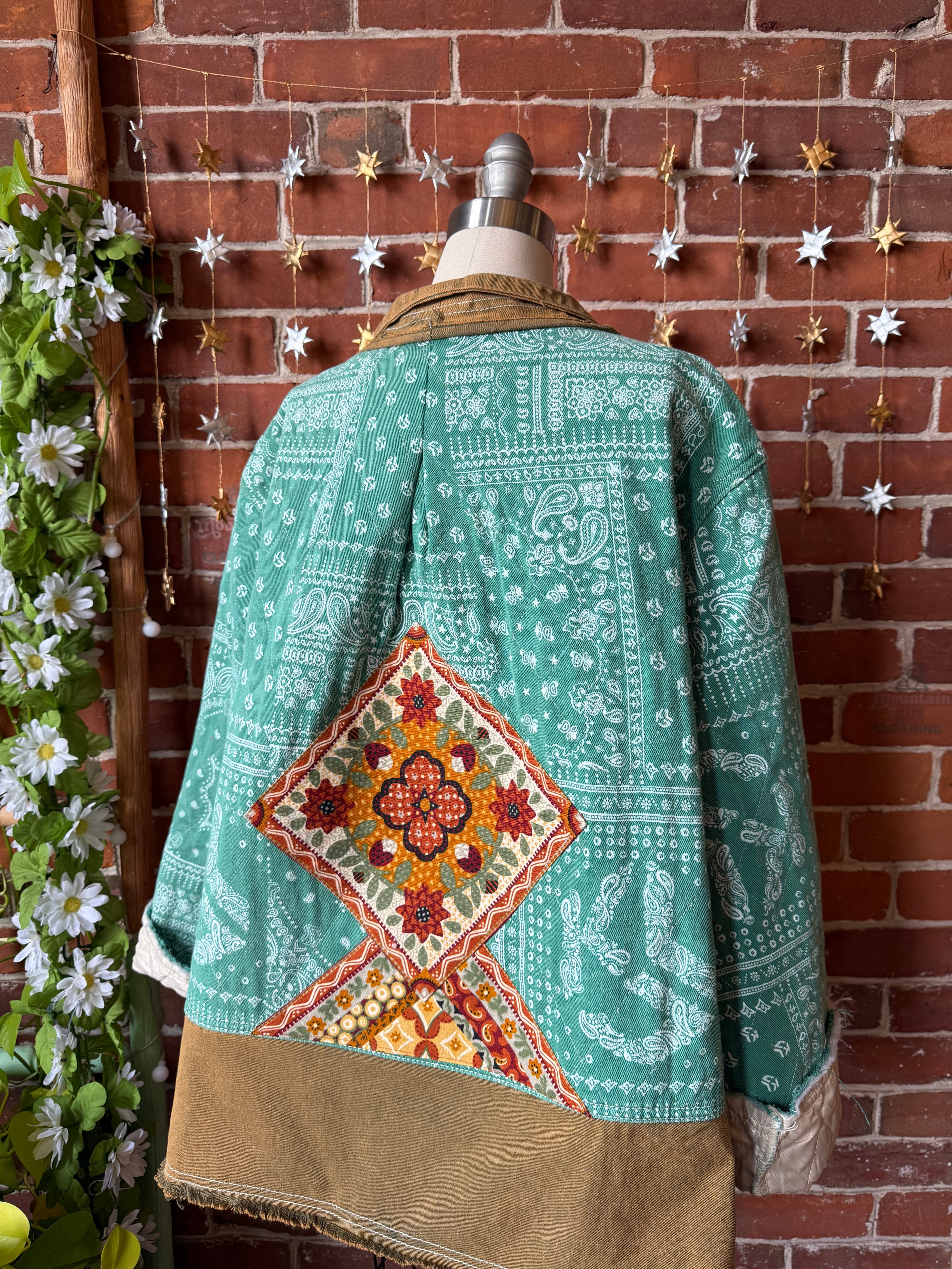 OOAK Winter Collection - Oversized Upcycled Quilted Patchwork Jade Paisley Jacket