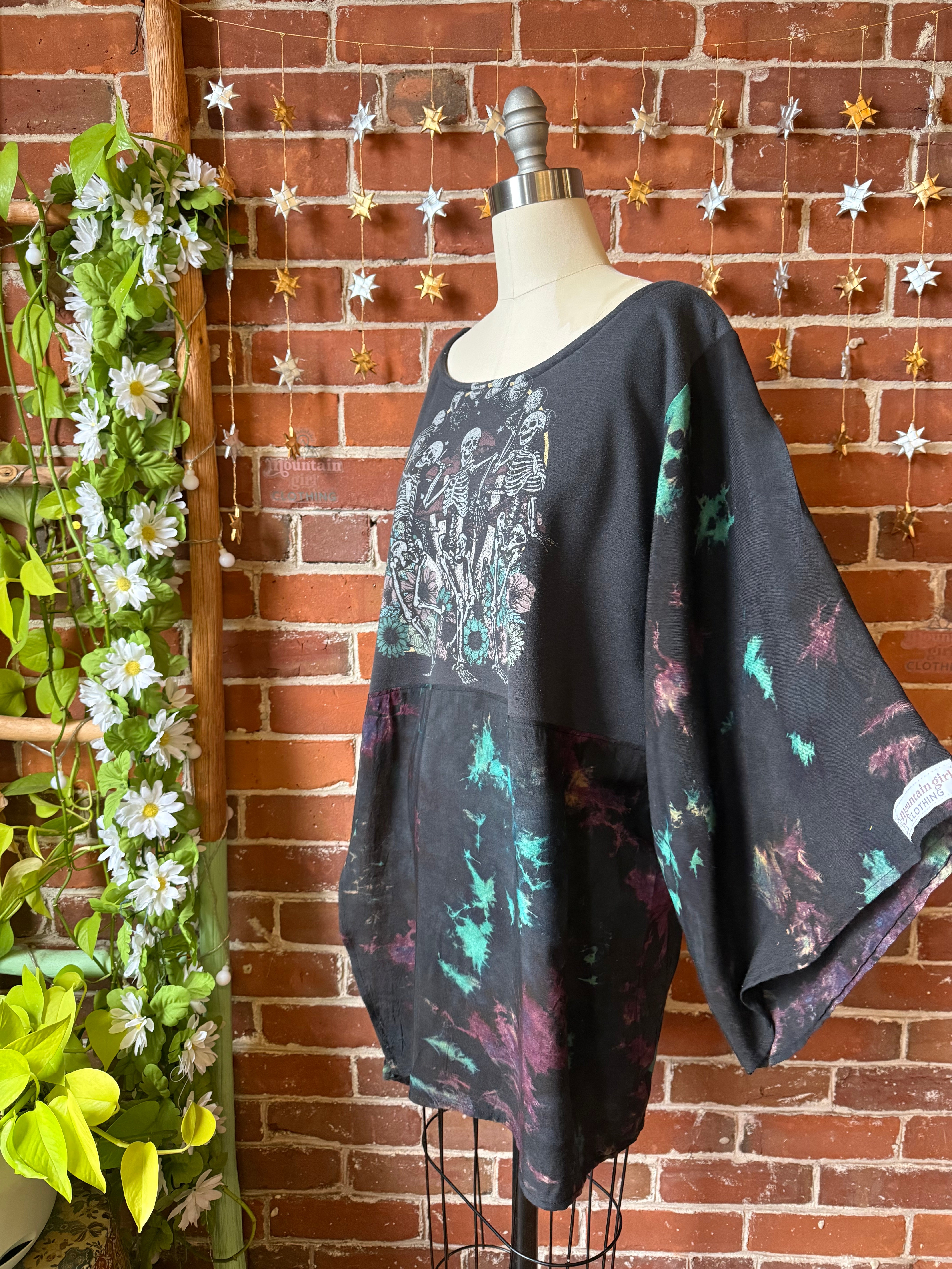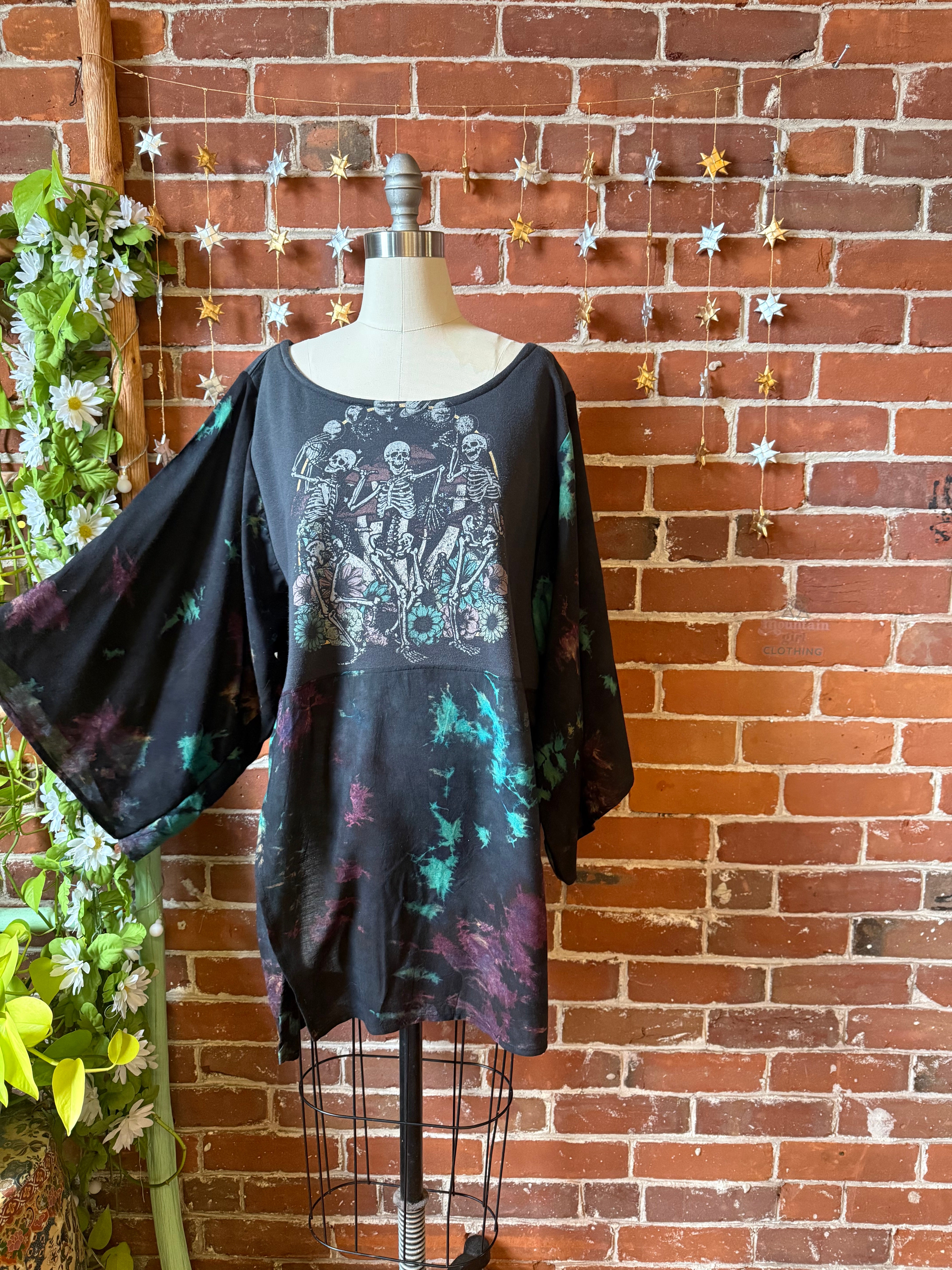 Upcycled sweatshirt and flowy tie dye bell sleeves and bottom hem with Side split