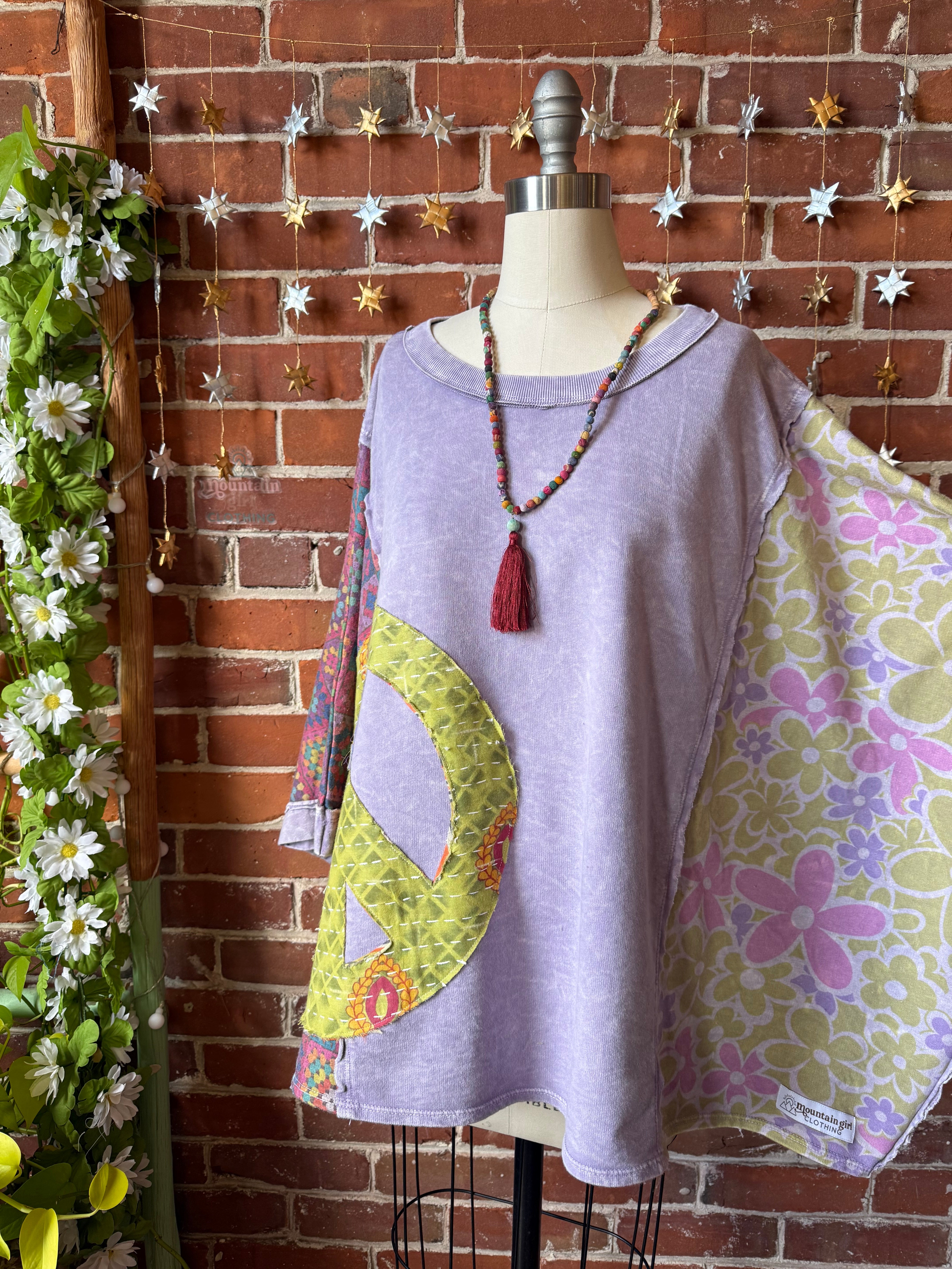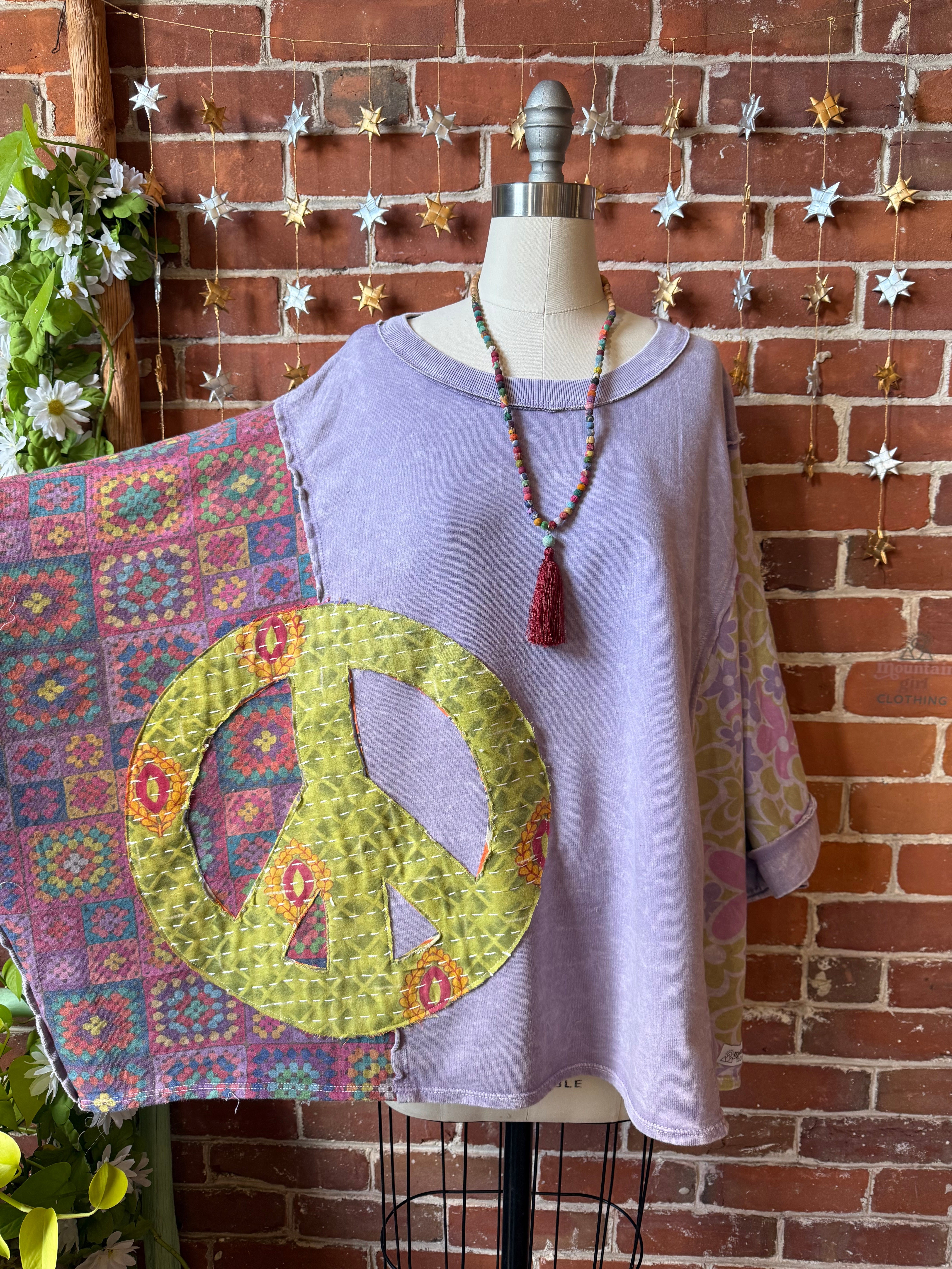 OOAK Winter Collection - Upcycled Kantha Peace Sign Patchwork Poncho Style Top 🌼