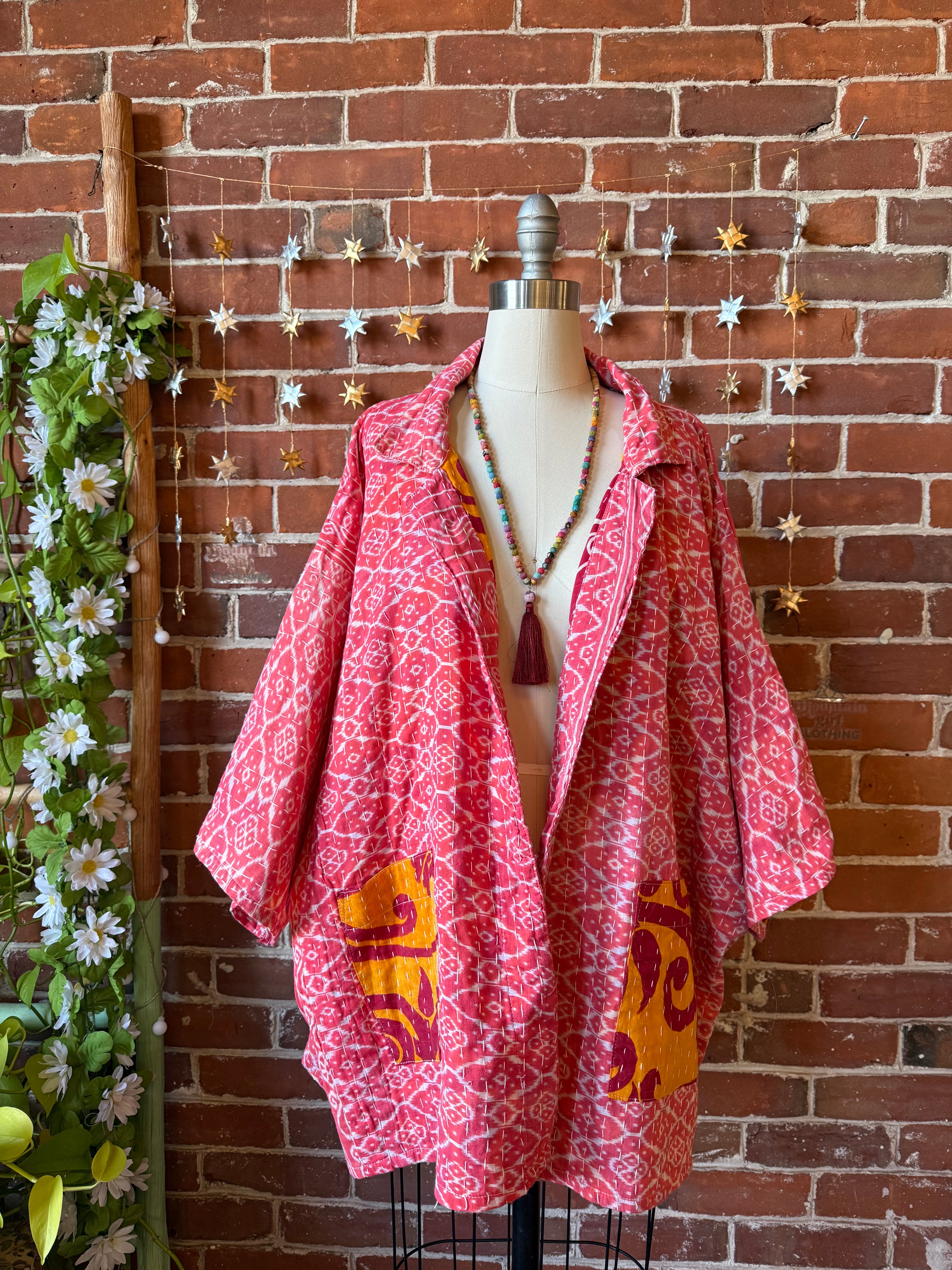 Upcycled jacket with vintage kantha fabric