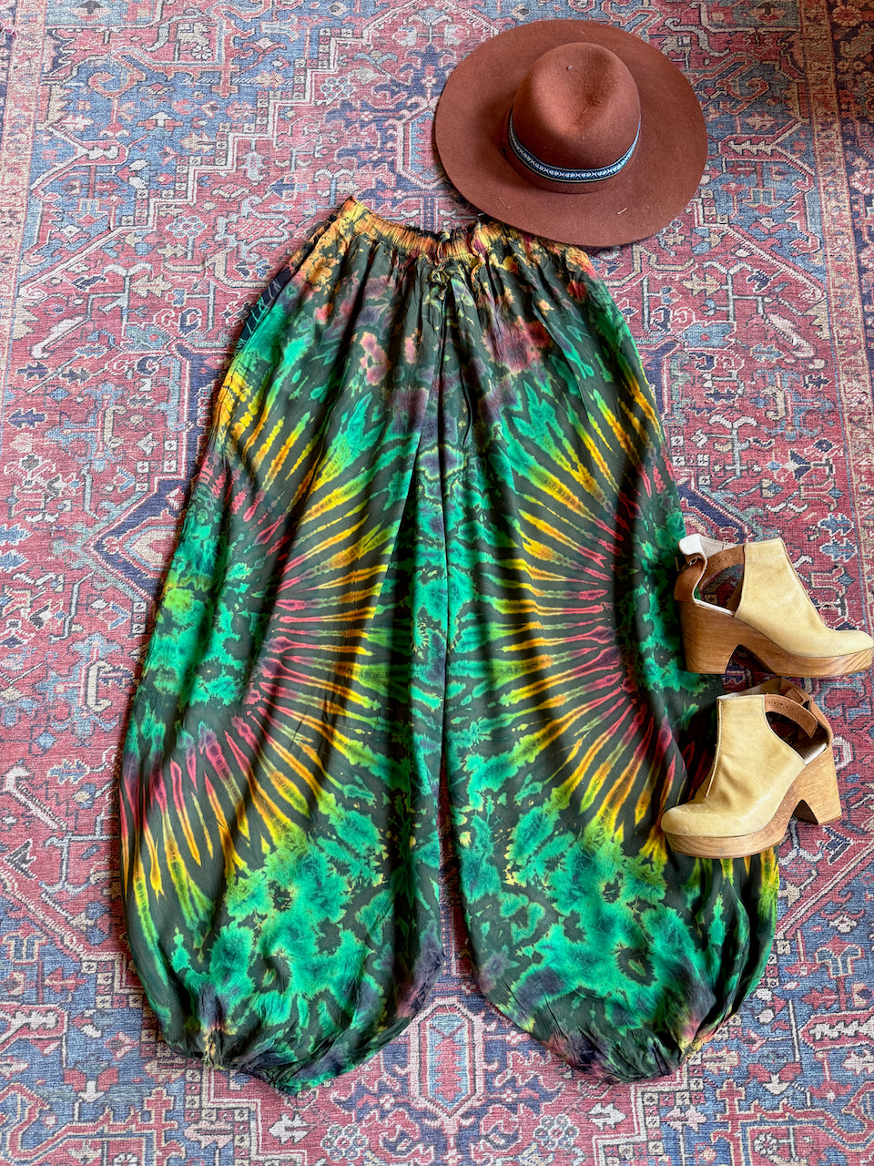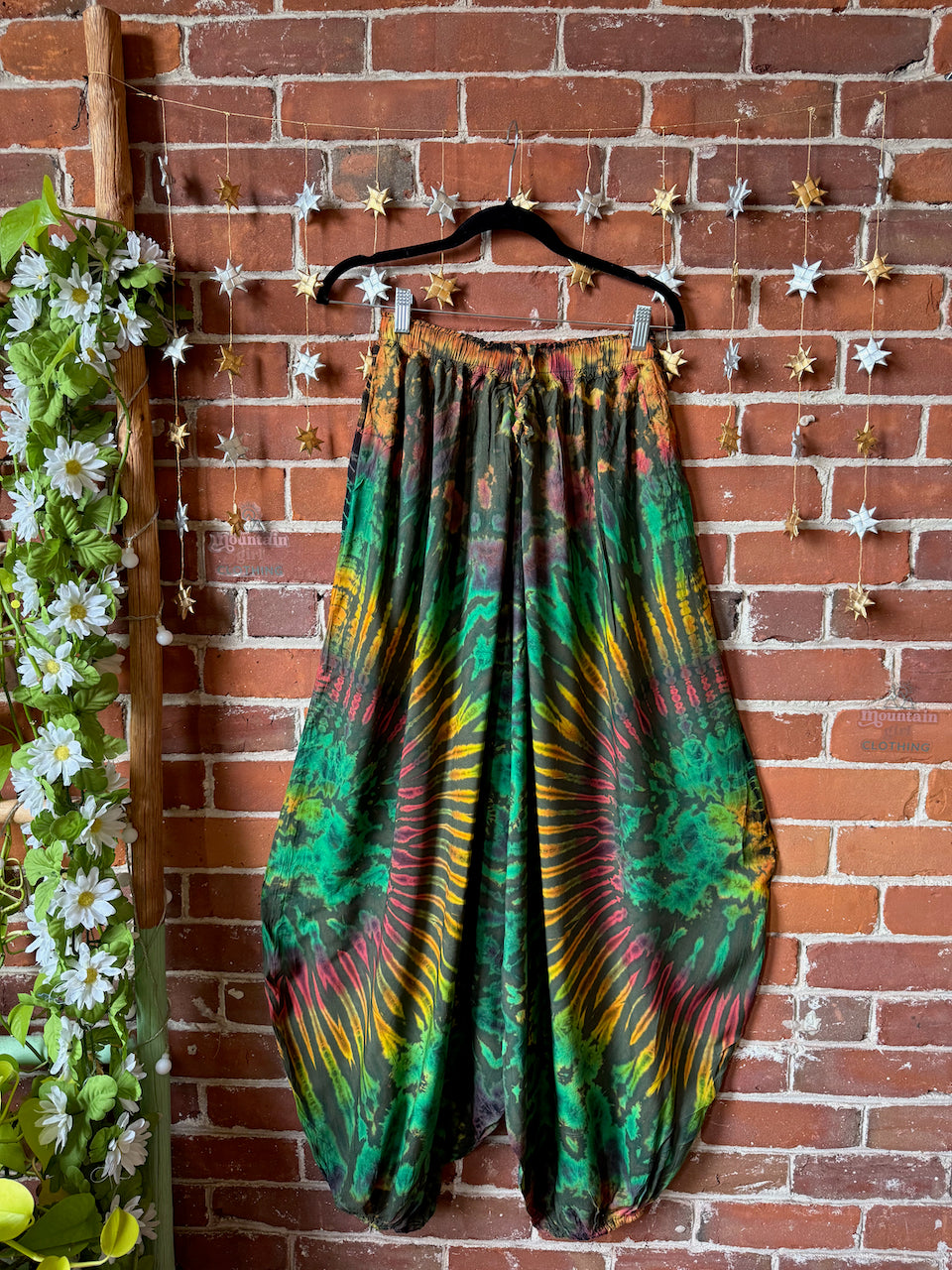 Raven Tie Dye Harem Pants -Green/Vibrant Earth Tones