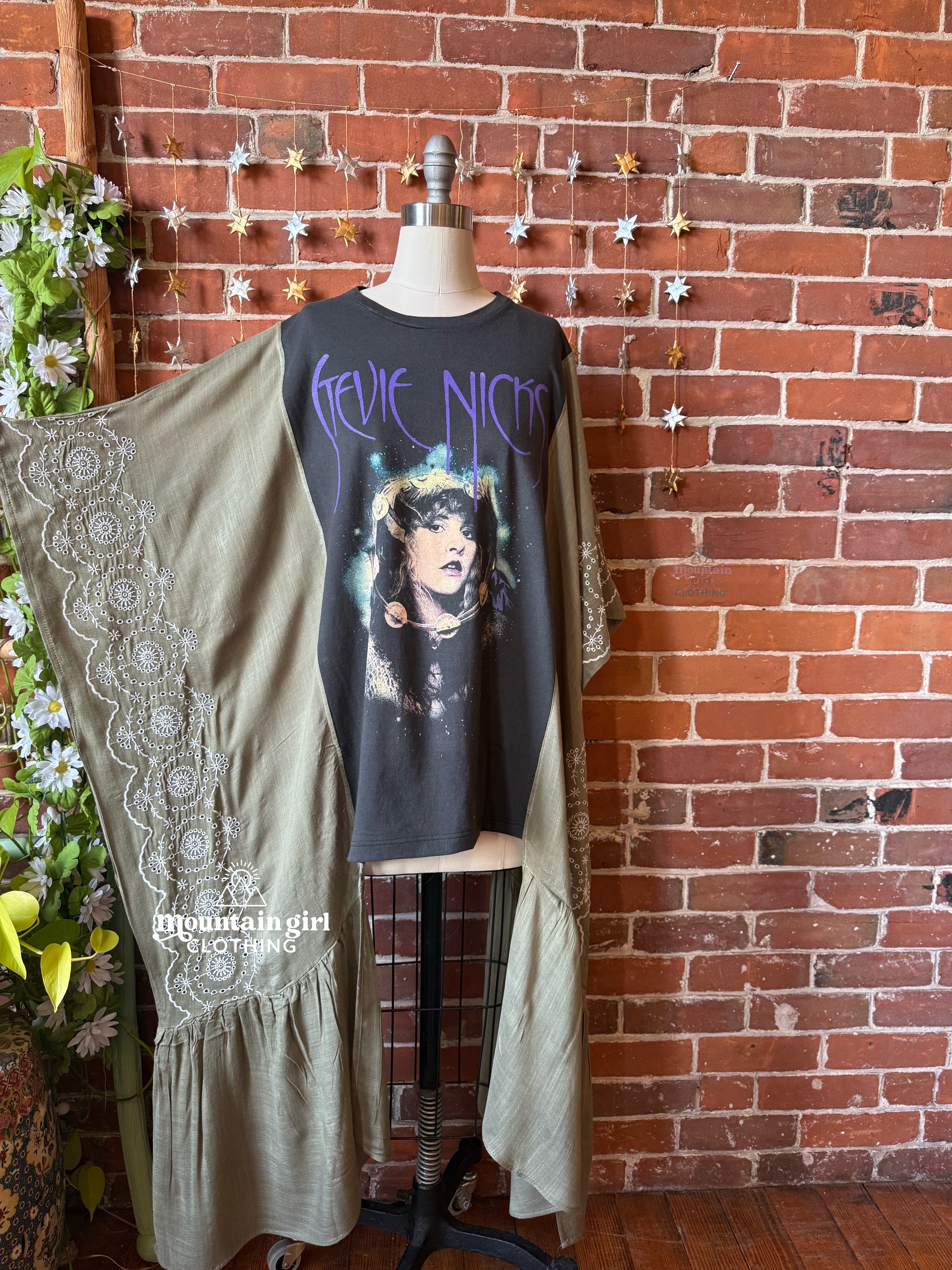 Stevie Silver Springs Hybrid Sage Embroidered Hi Lo Poncho Top