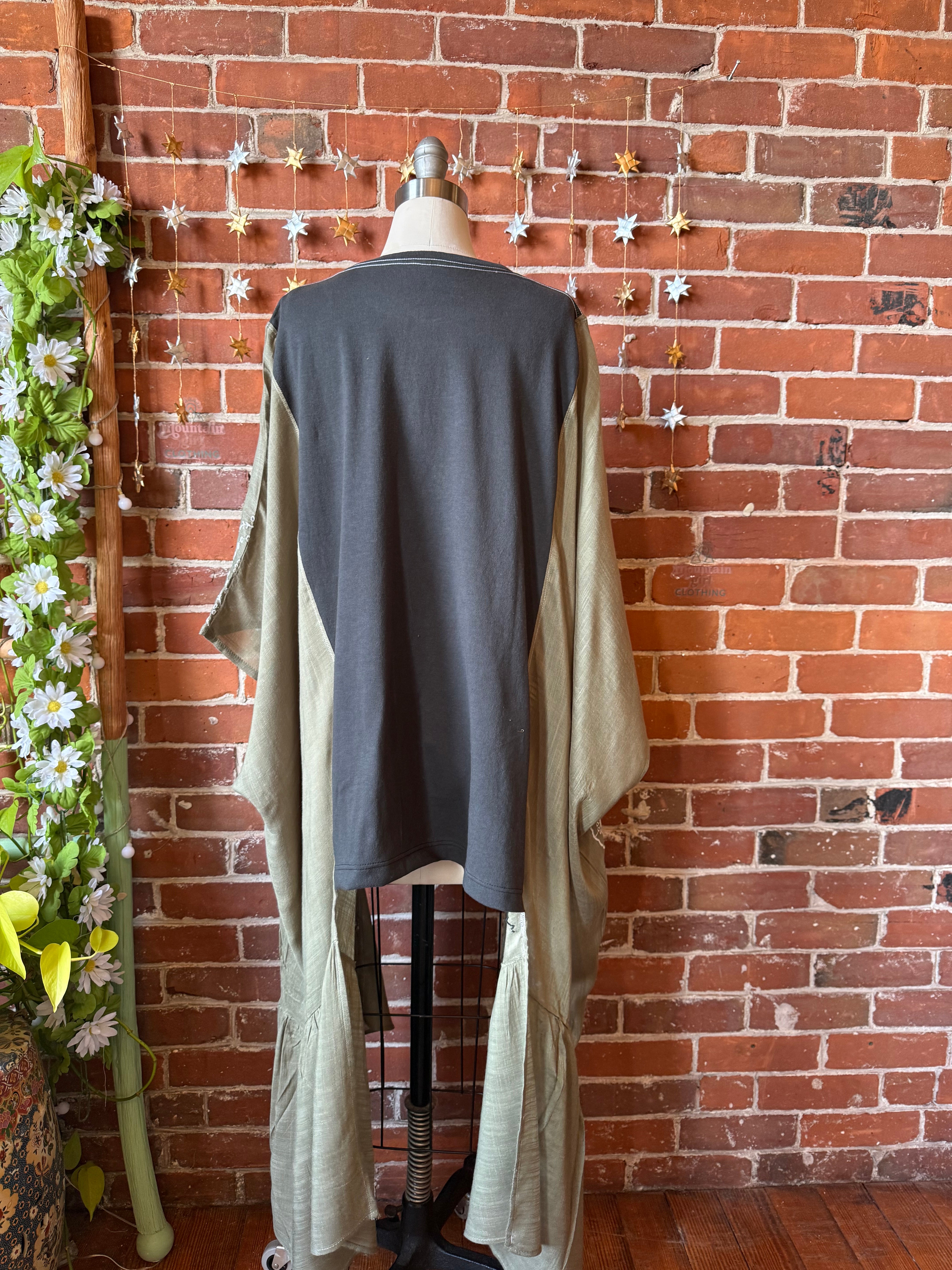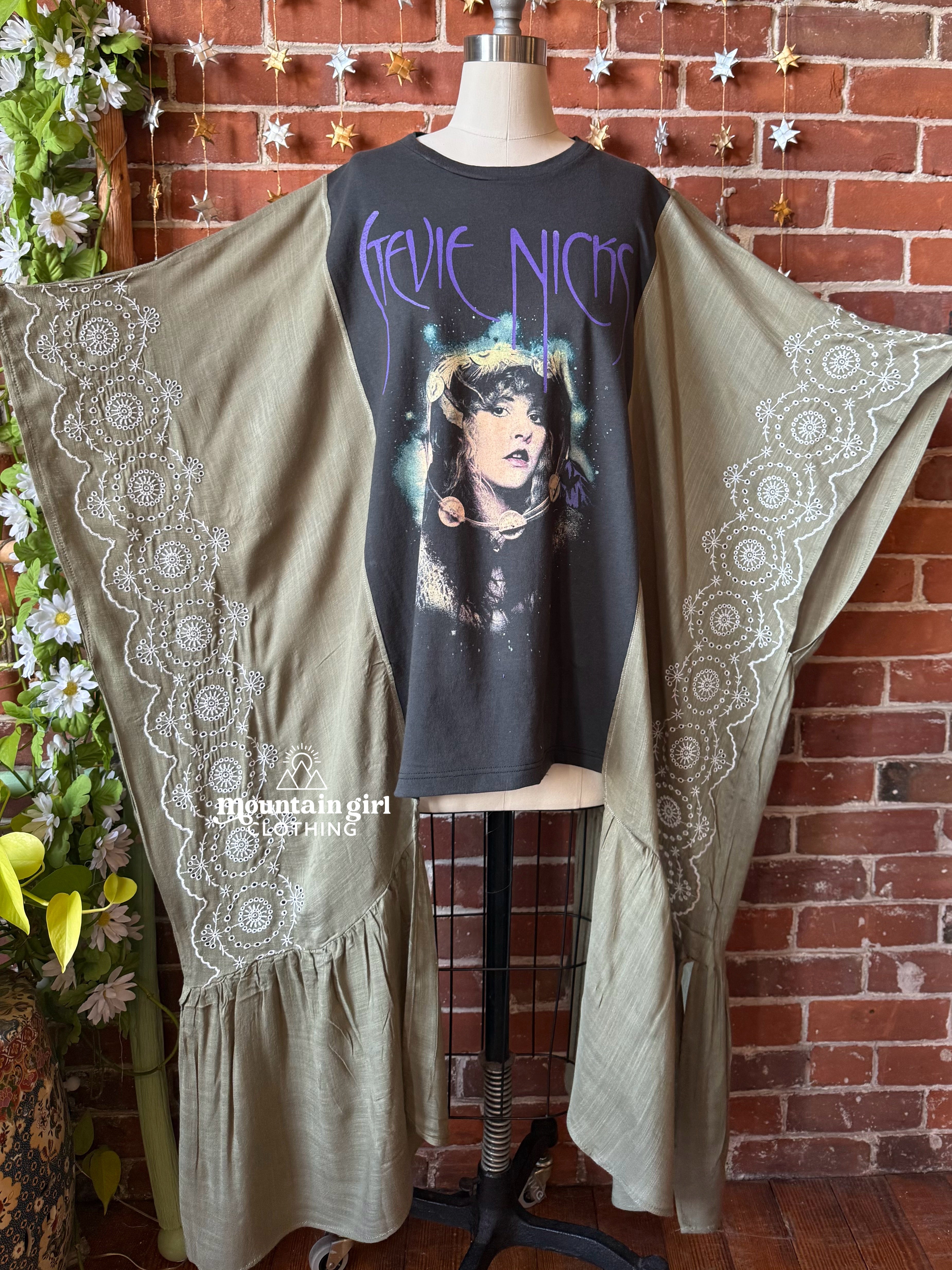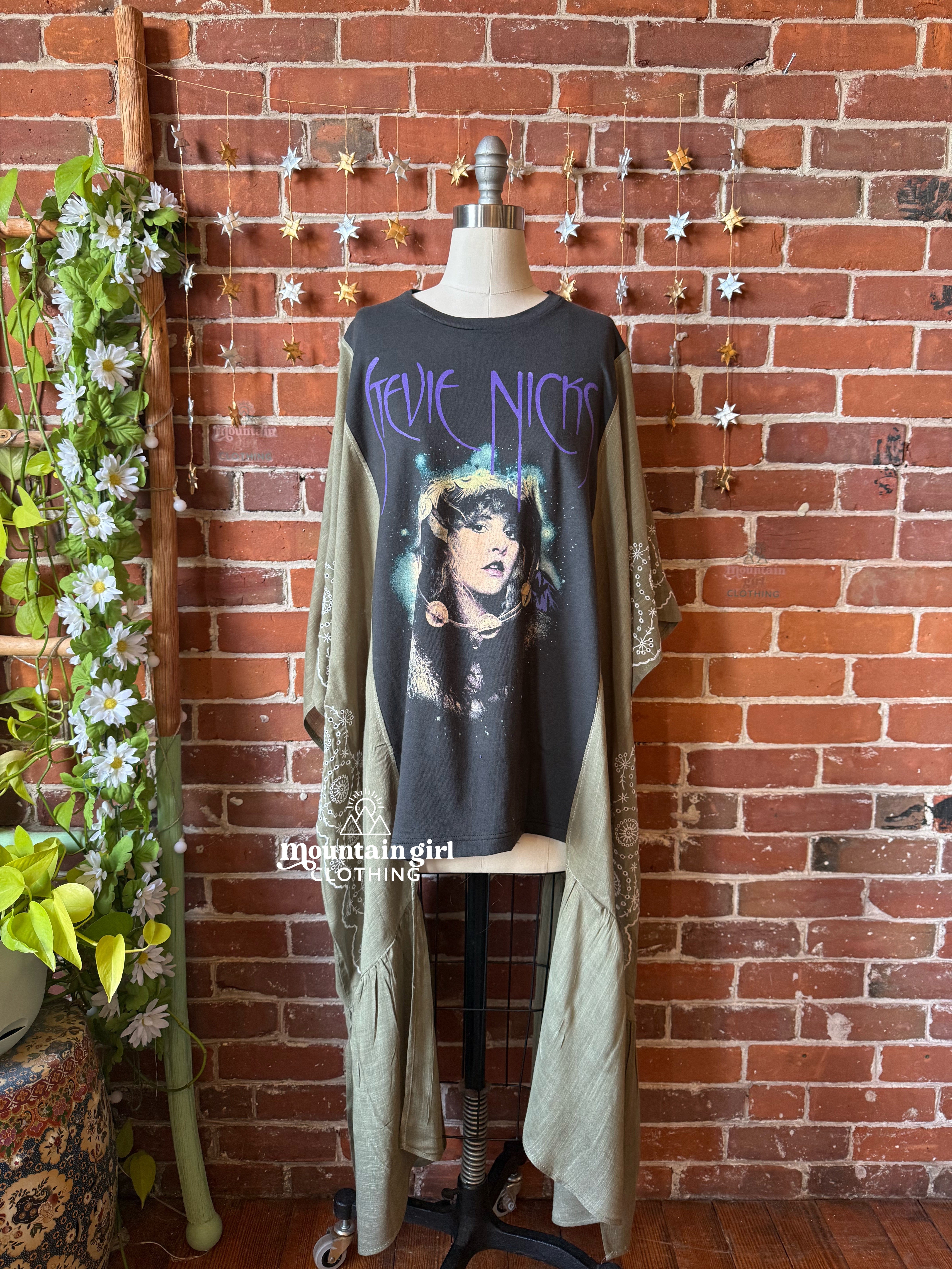 Elevate your boho wardrobe with this stunning Upcycled Poncho. Handmade with love, this flowy poncho is Designed to fit most sizes, this versatile piece is perfect for adding a touch of magic to any outfit.