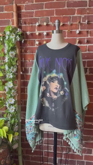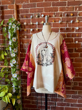 OOAK Autumn Collection- Upcycled Stevie Nicks Inspired Kantha Poncho Sweatshirt