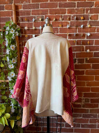 OOAK Winter Collection- Birdsong Kantha + Bleach Plaid Button Up Wing Style Poncho Jacket