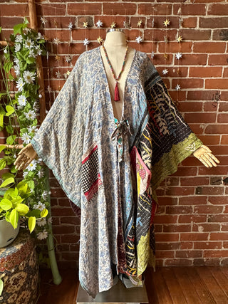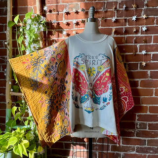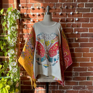OOAK Autumn Collection- Upcycled Tie Dye Embroidered Hi Lo Kantha Poncho Top