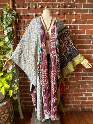 OOAK Autumn Collection-Reversible Stardust Kantha Ruana Jacket With Pockets