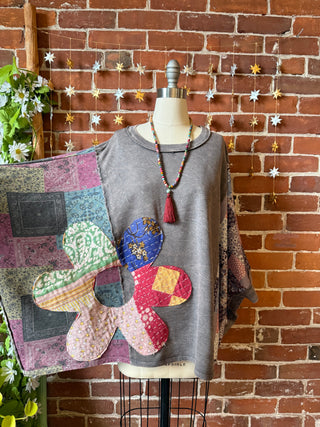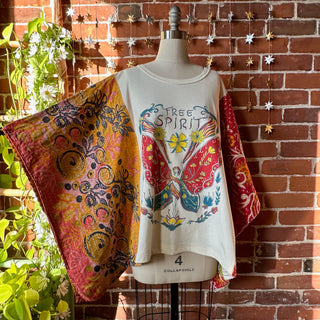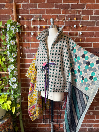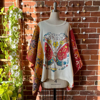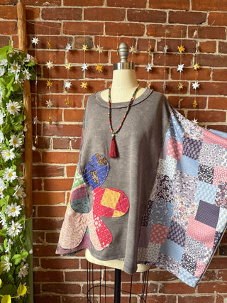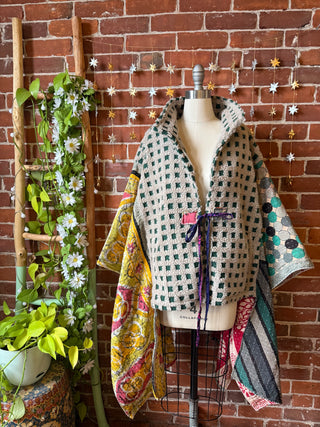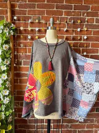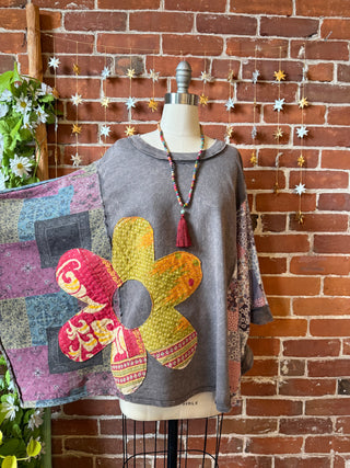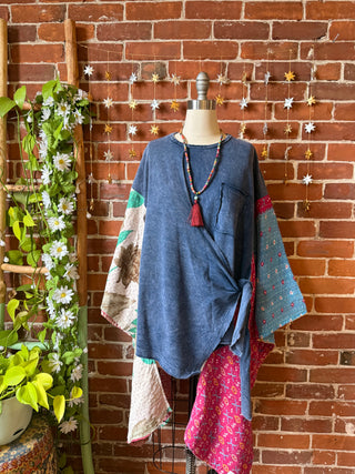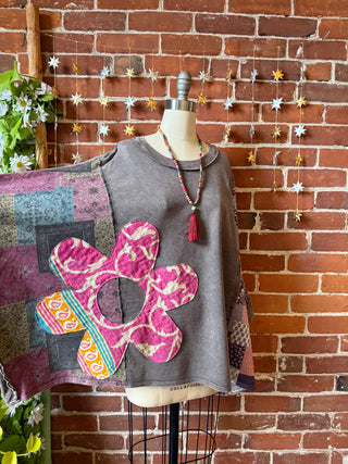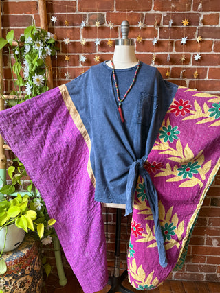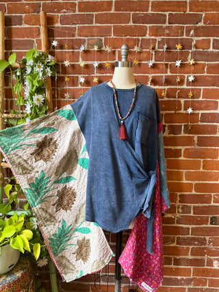 OOAK Winter Collection - Upcycled Kantha Flower Patch Patchwork Poncho Style Top 🌼