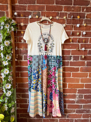 OOAK Winter Collection - Size Small/Medium Upcycled Sun Moon Patchwork Tshirt Dress