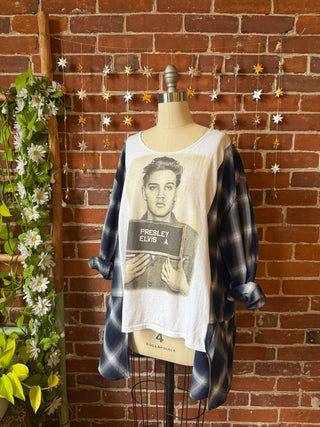 OOAK Winter Collection - Size XL/2XL Upcycled Elvis Presley Inspired Plaid Hybrid Top