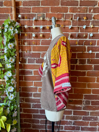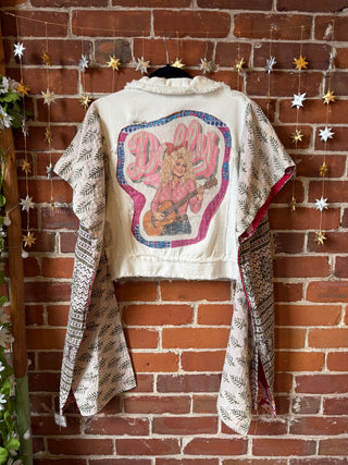 OOAK Winter Collection - Size XS/Small Dolly Parton Inspired Upcycled Hi Lo Kantha Poncho Jacket