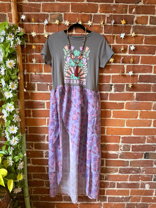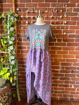 OOAK Winter Collection - Size 2XL Upcycled Grow Together Mushroom Kantha Bell Sleeve T-shirt