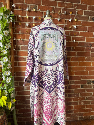 Grateful Dead Inspired Upcycled Mandala Long Tapestry Robe Kimono with Pockets and Belt