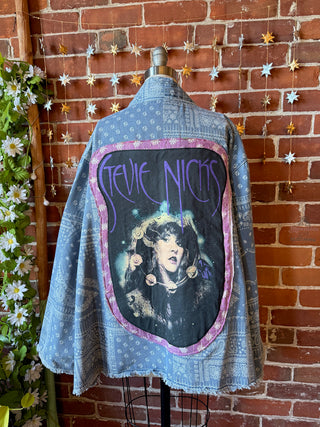 OOAK Winter Collection - Oversized Paisley Stevie Inspired Soft Wash Denim Upcycled Jacket