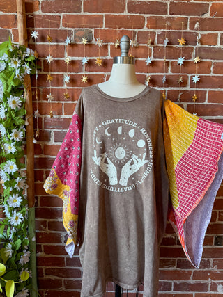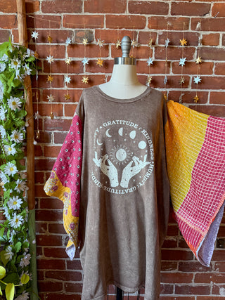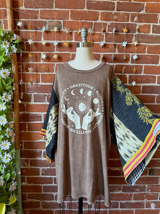 OOAK Winter Collection - Size 3XL Upcycled Gratitude Kantha Bell Sleeve T-shirt