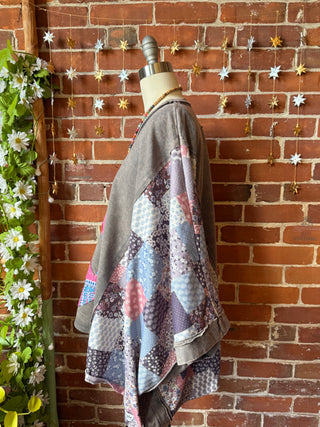 OOAK Winter Collection- Upcycled Stevie Silver Springs Inspired Hi Lo Kantha Poncho Top