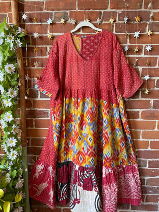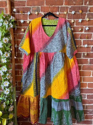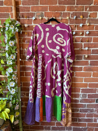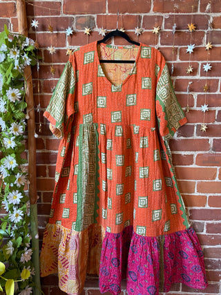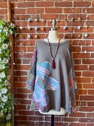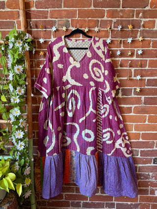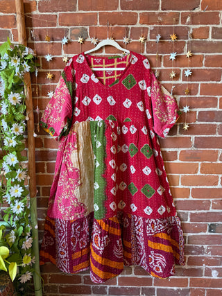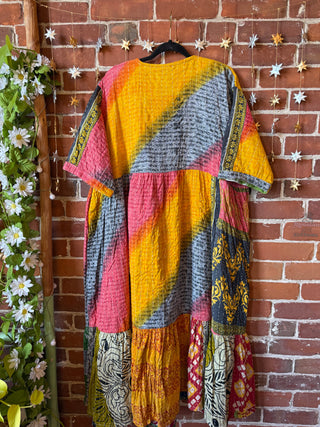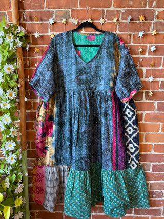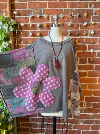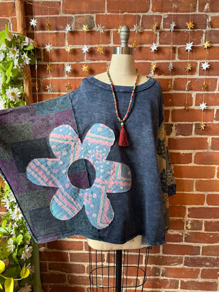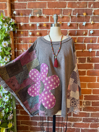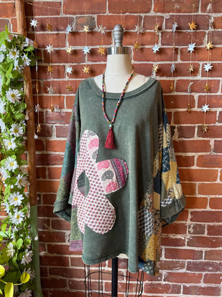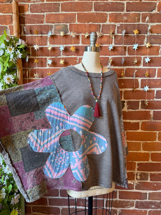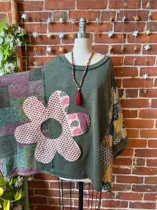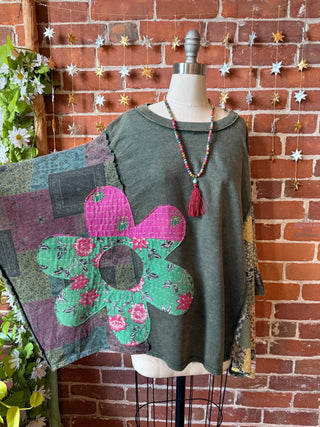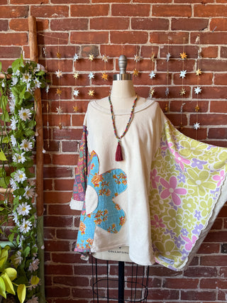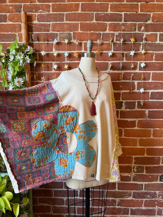 OOAK Winter Collection - Upcycled Kantha Flower Patch Patchwork Poncho Style Top 🌼