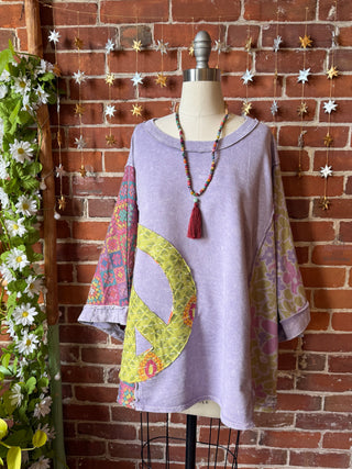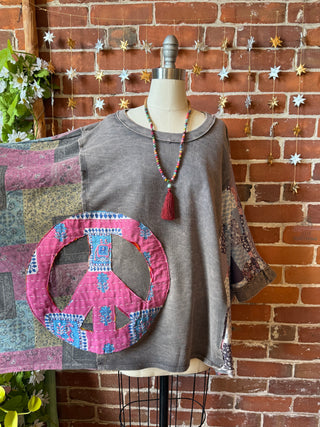 OOAK Winter Collection - Upcycled Kantha Peace Sign Patchwork Poncho Style Top 🌼