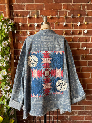 OOAK Winter Collection - Oversized Paisley Soft Wash Denim Upcycled Patchwork Jacket