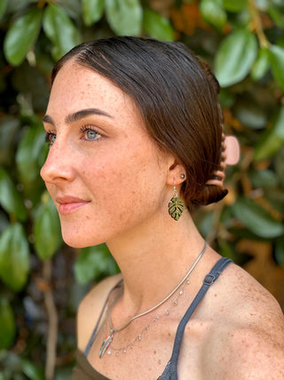 Split Leaf Philodendron Leaf Blossoms Earrings