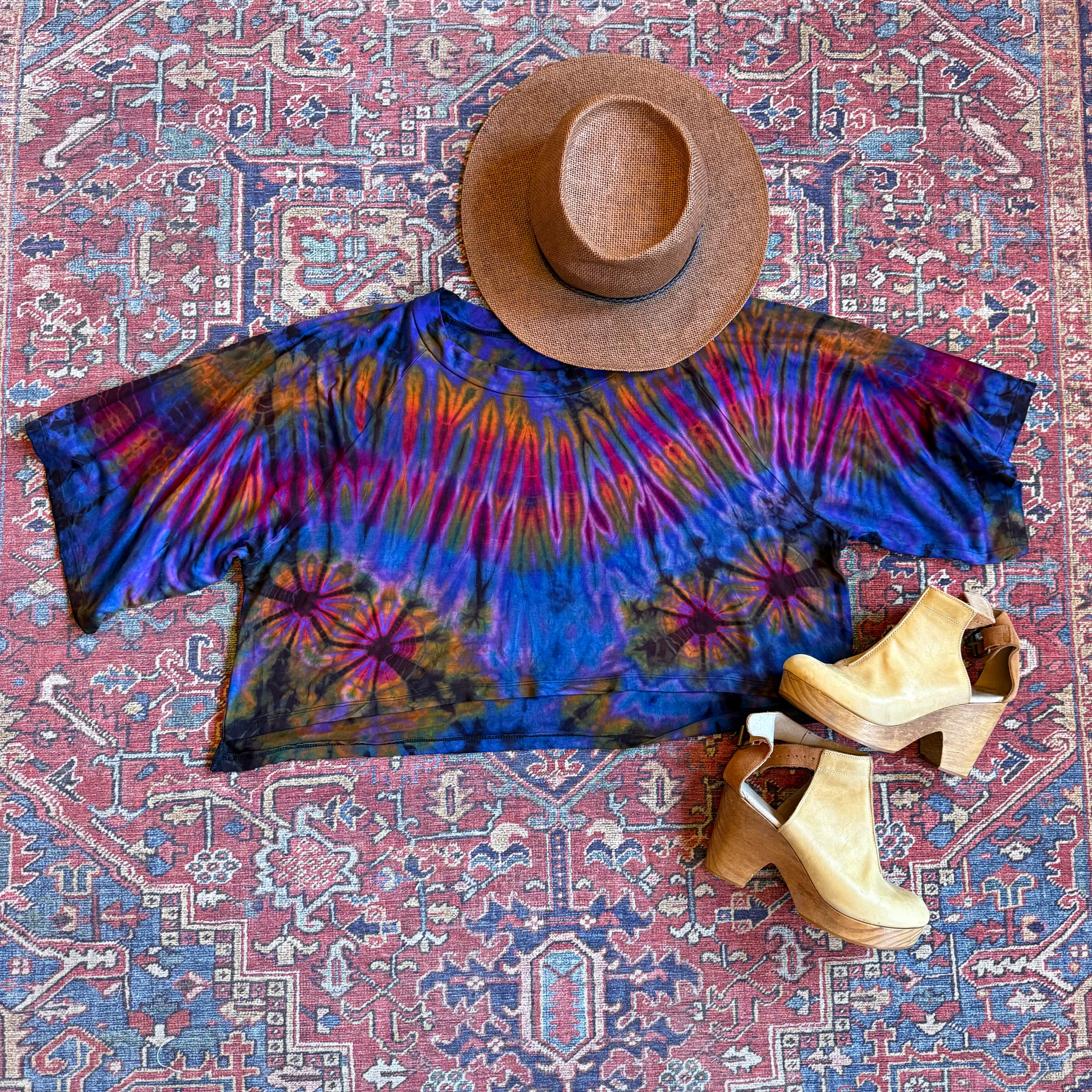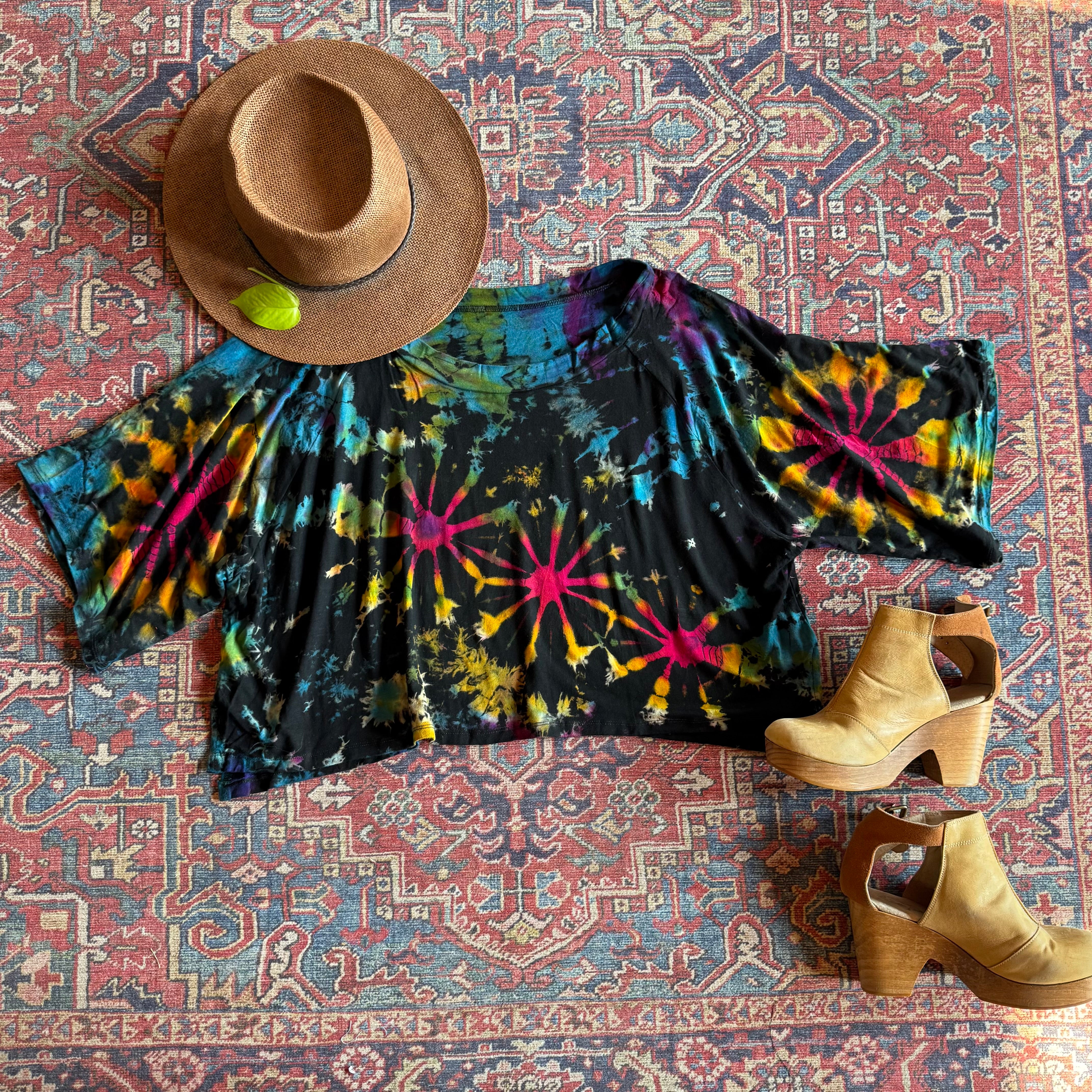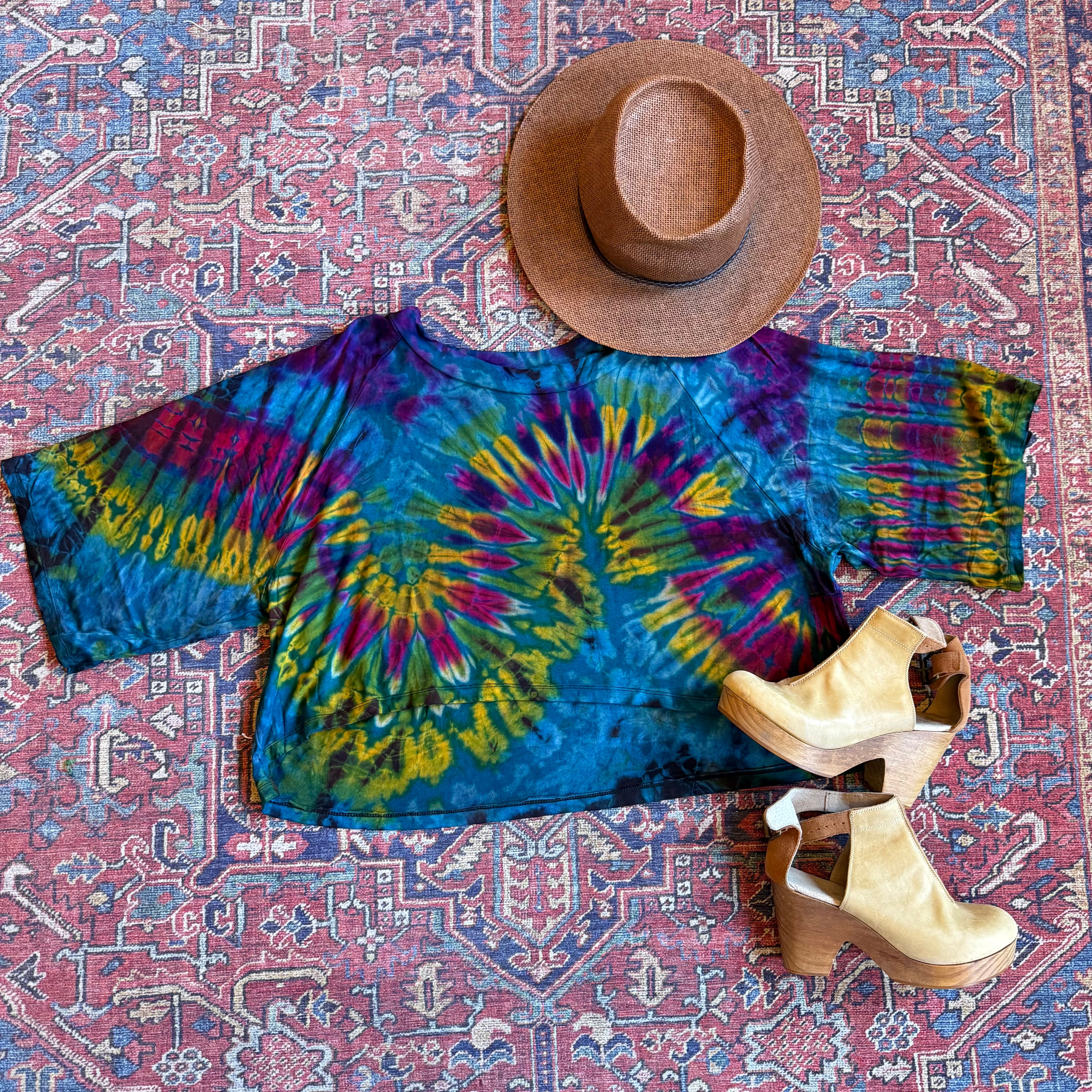 Soft stretchy and flowy, beautiful tie dye cropped tee