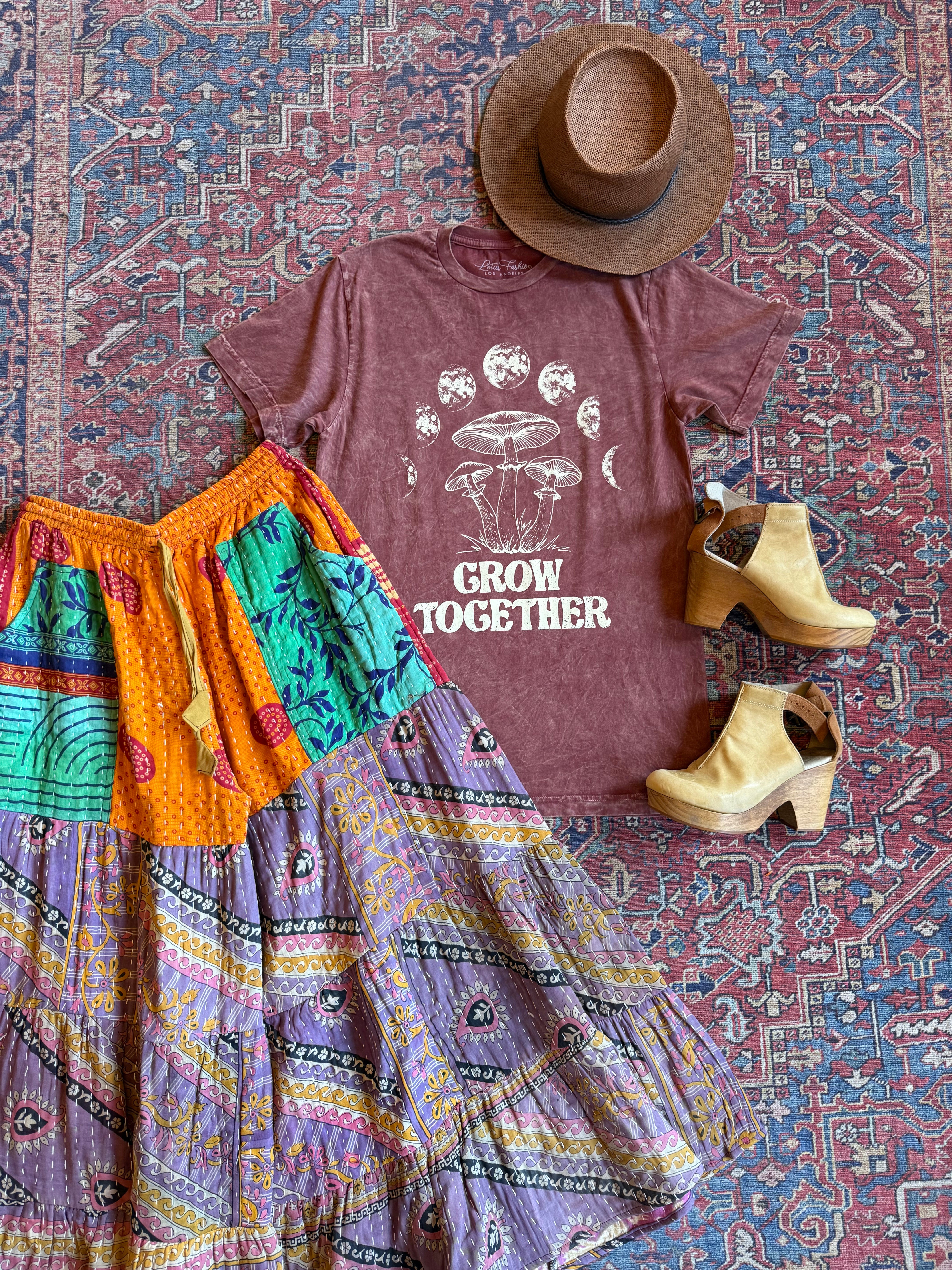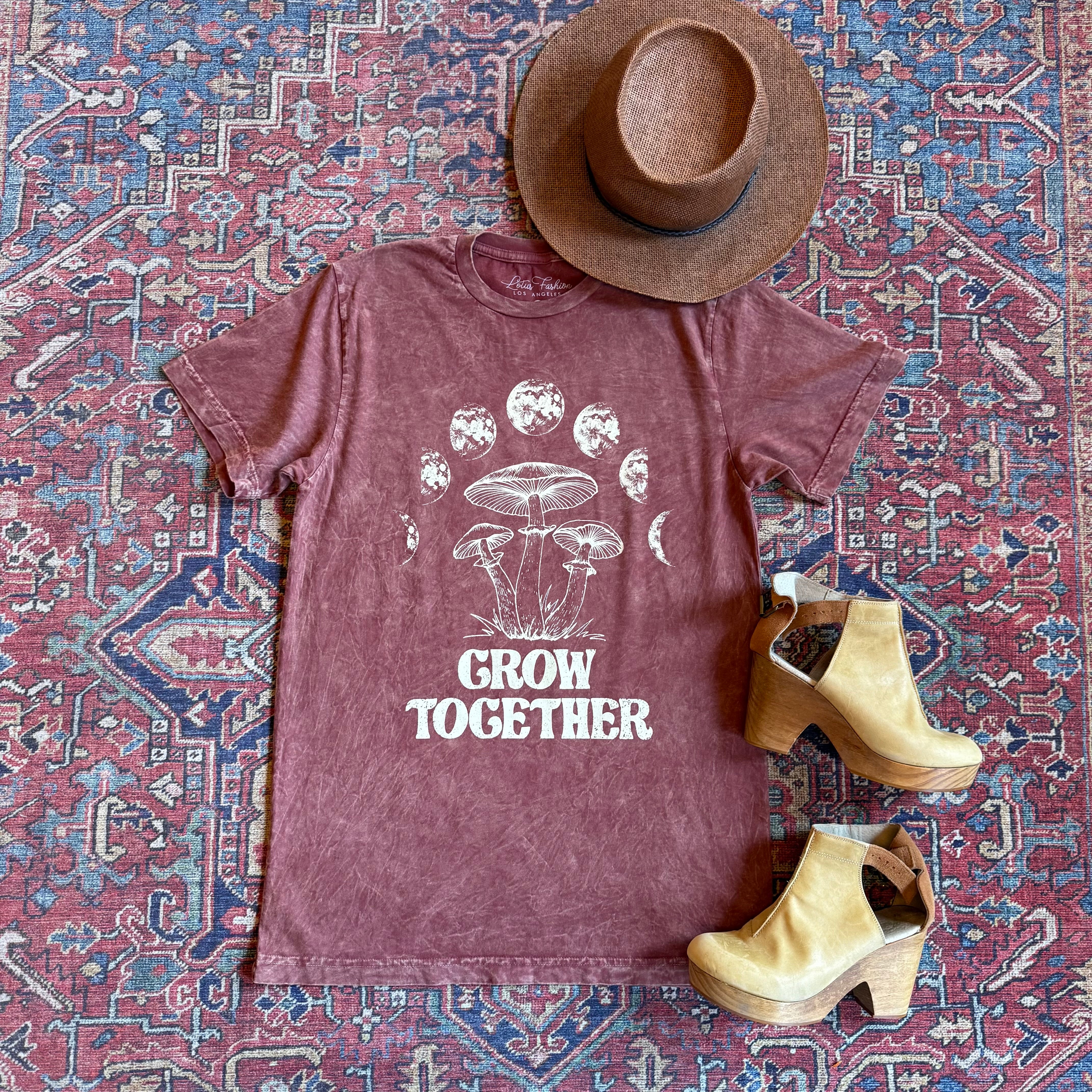 Grow Together Mushroom Moon Phase Mineral Wash TShirt