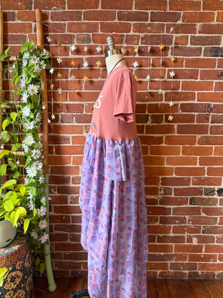 OOAK Autumn Collection - Size Large Upcycled Pink Floyd Inspired Flowy Tie Dye Tunic Tee