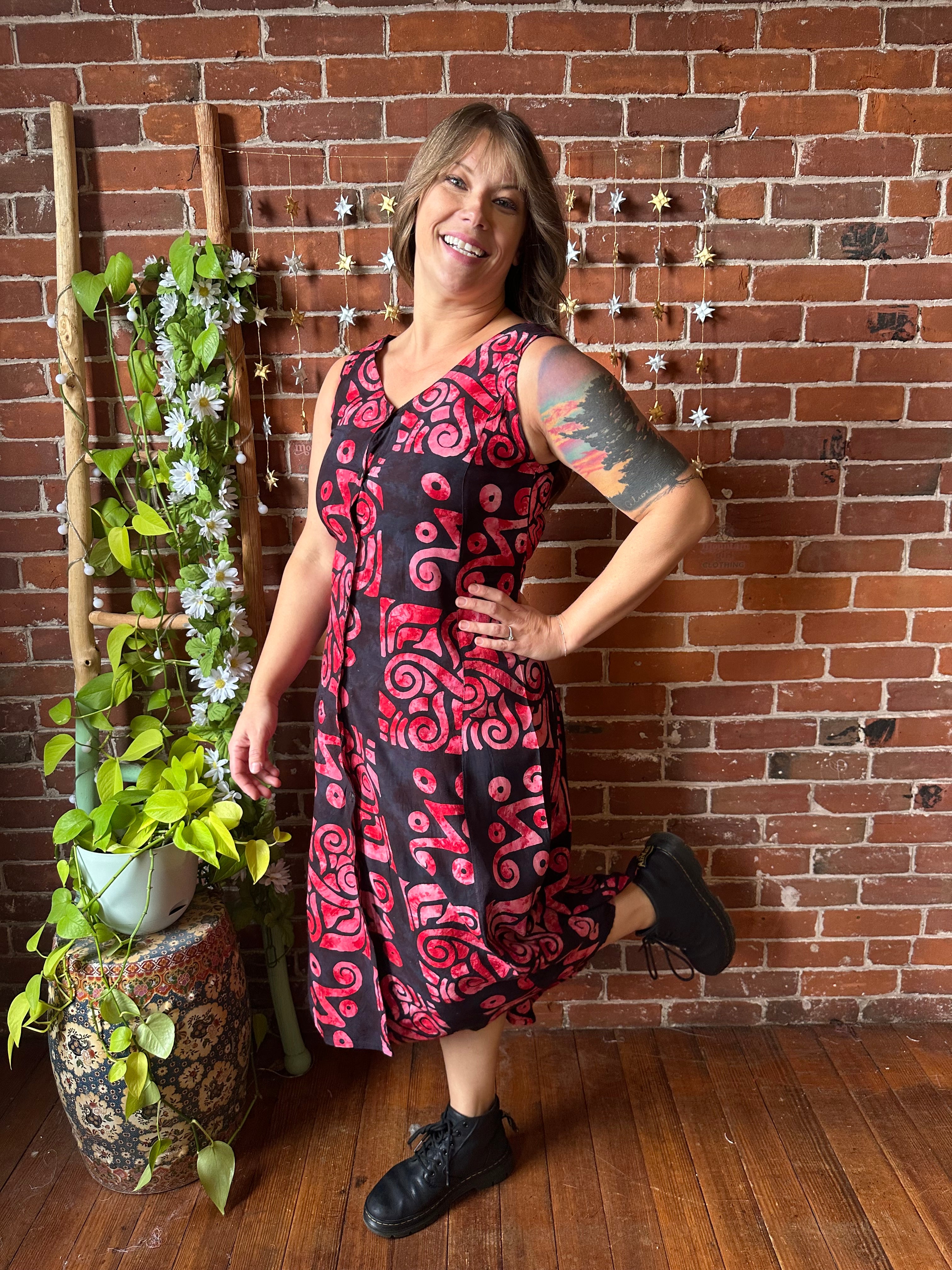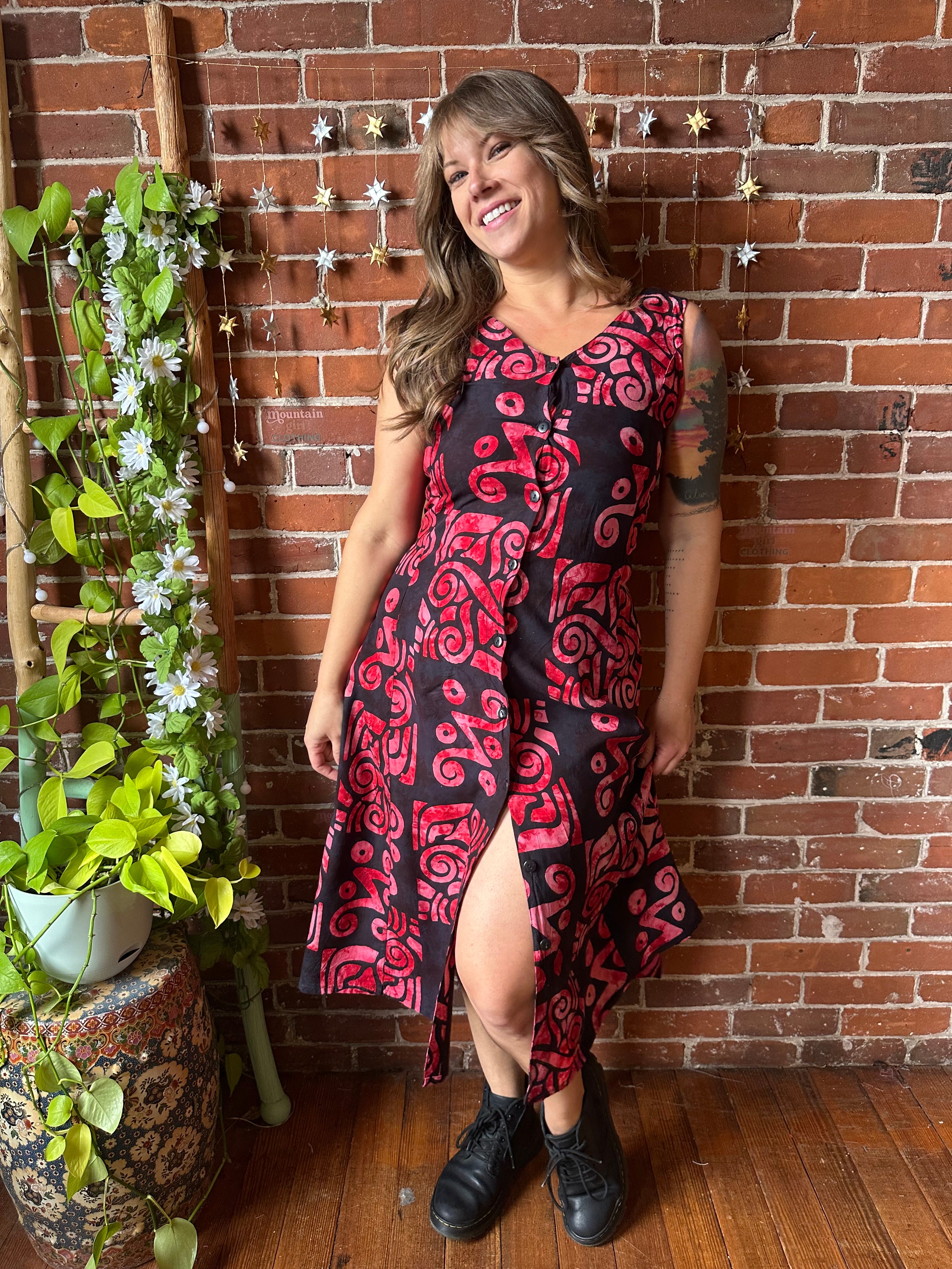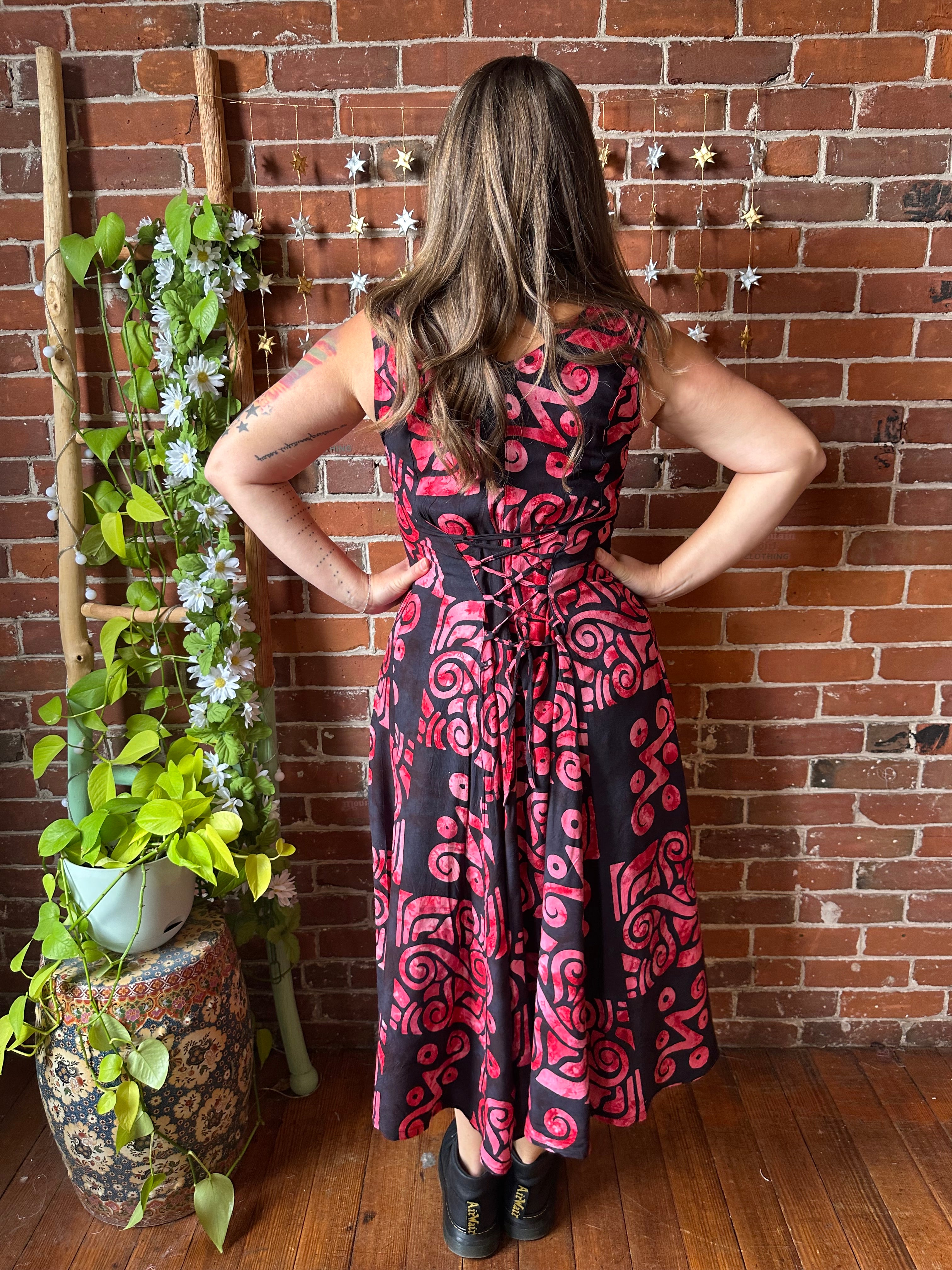 Beautiful batik button up, corset back dress