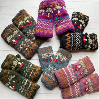 Mushroom Fair Isle Fleece Lined Wool Handwarmers / Fingerless Gloves