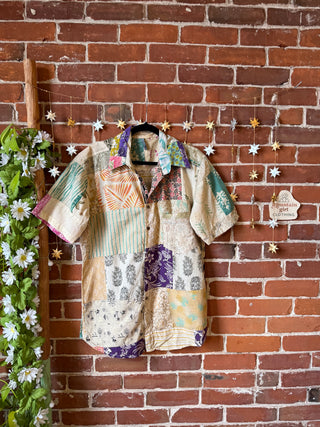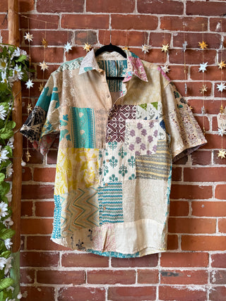 Festival Season Mens 100% Cotton Patchwork Short Sleeve Button Up Shirt -Fair Trade Made