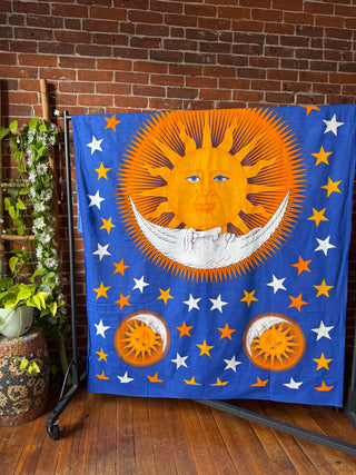 100% 90s Inspired Cotton Celesital Sun Moon Star Tapestry / Wall Hanging / Bedspread