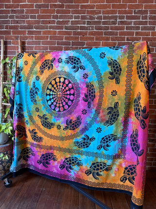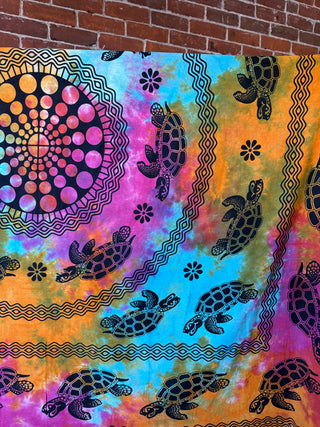 XL 100% Cotton Tie Dye Turtle Mandela 🐢 Tapestry / Wall Hanging - Fair Trade Made