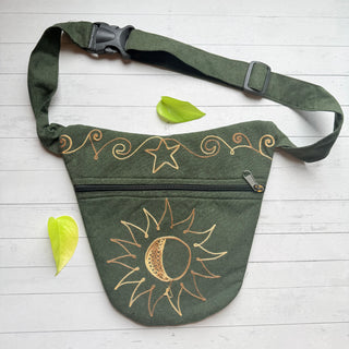 Celestial Sun Moon Embroidered Cotton Fanny Pack / Crossbody Bag - Multiple Colors Available